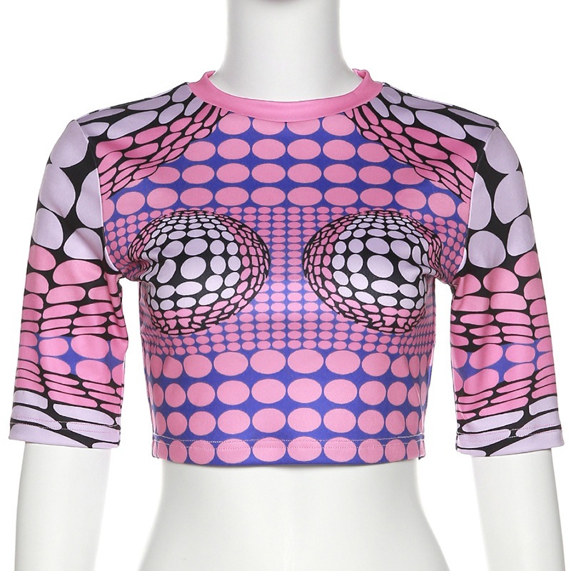 Summer New European And American Women's Clothing Fashion Short-sleeved Top 3D Floral Print Slit Slimming Sheath Skirt