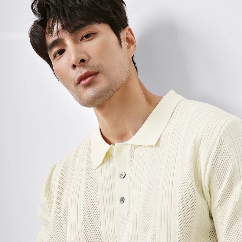 Summer New Hollowed Out Lapel Knit Men's Fashion Casual Short Sleeve