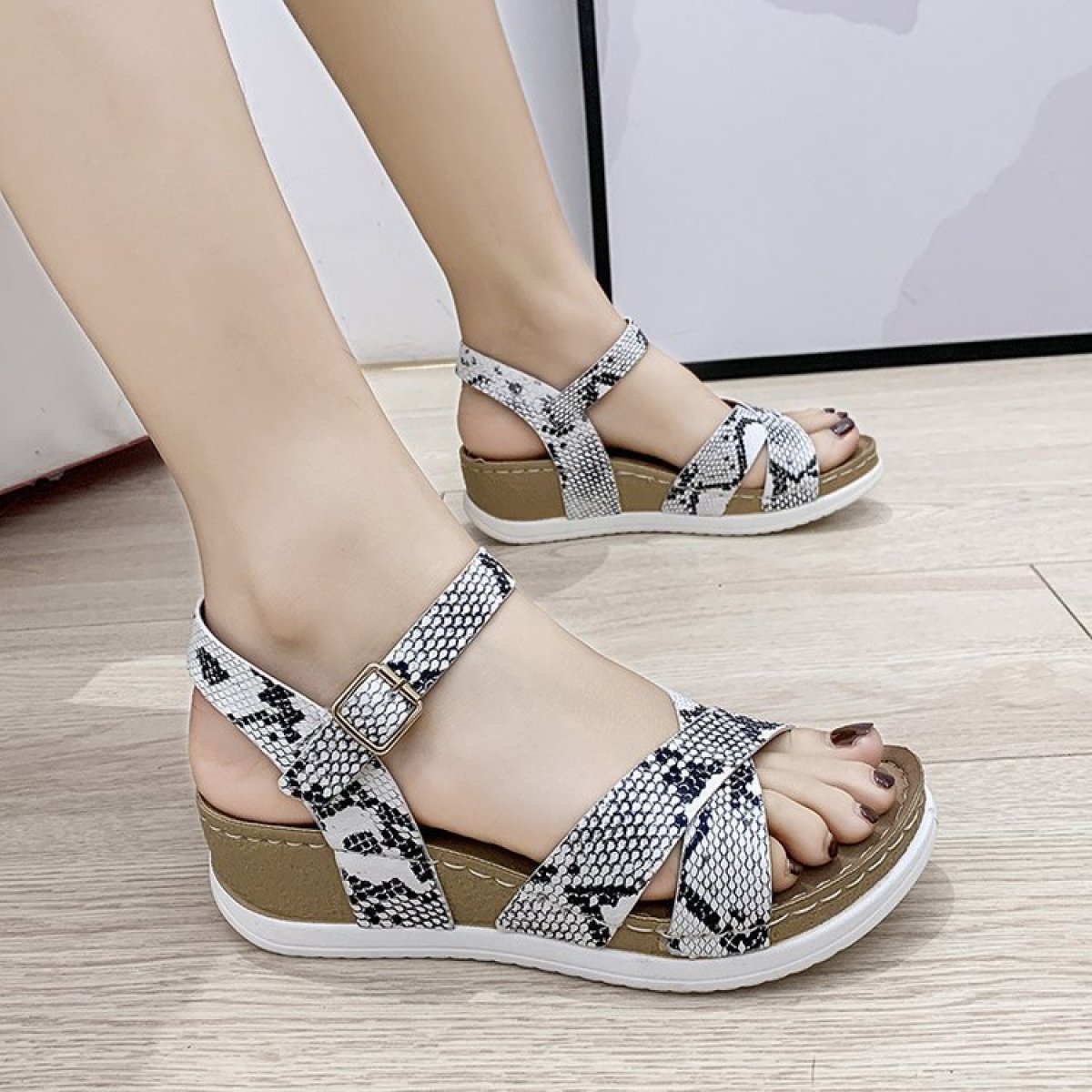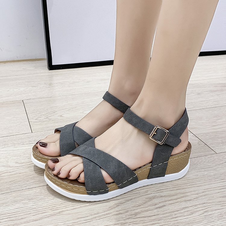 Popular elements: hollow, stitching, slope heel, buckle, waterproof platform, leather stitching