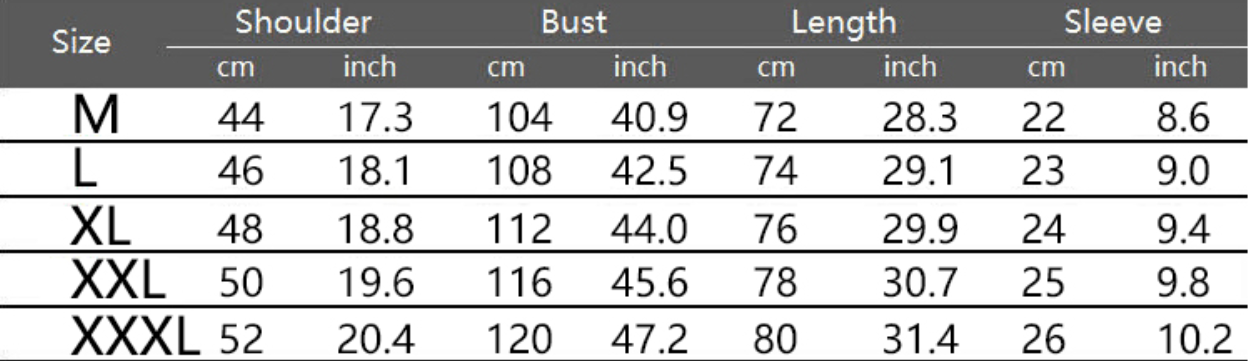 Size: M/L/XL/XXL/3XL