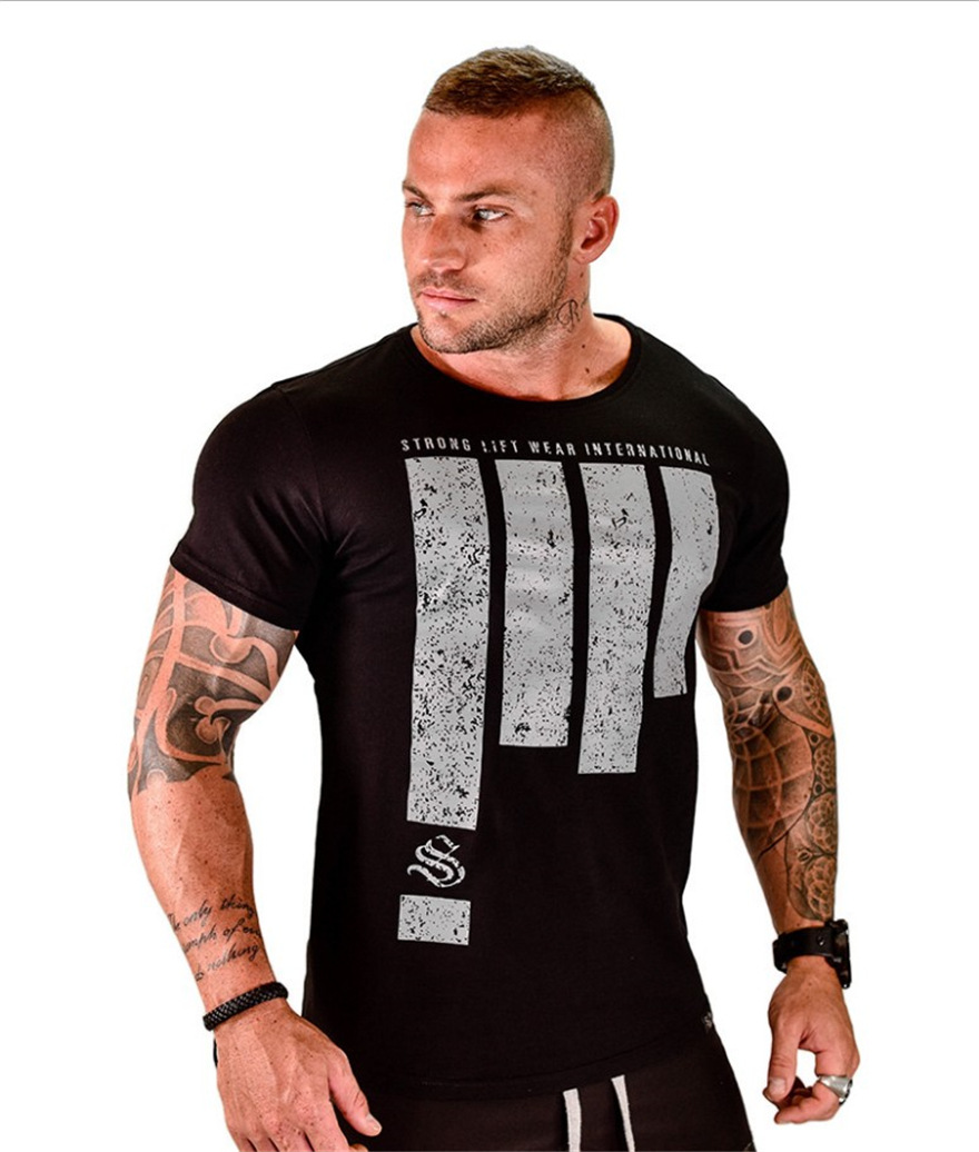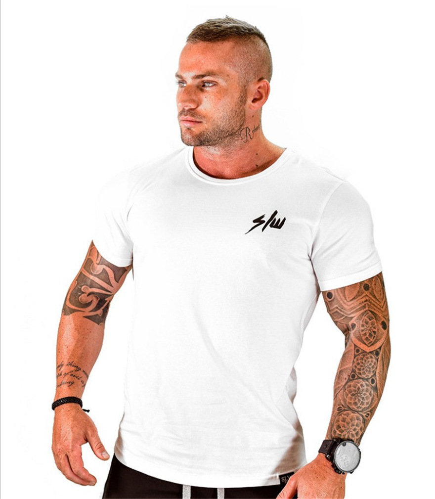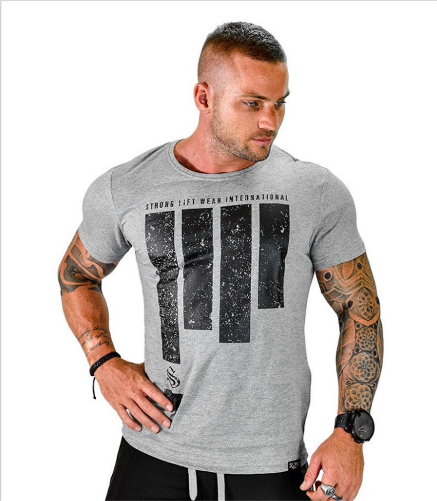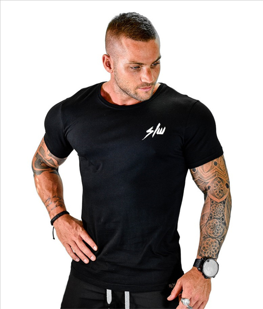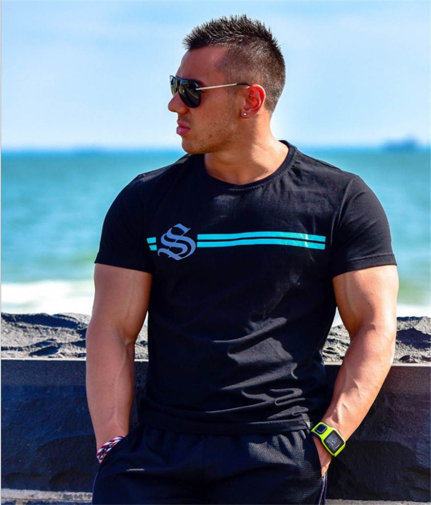 Muscle fitness summer new men's sports outdoor thin short sleeve slim casual running training T-shirt Style: sports and leisure
