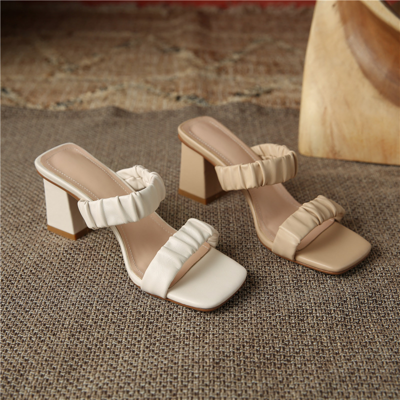 Summer New Open-toed Square Toe Ladies Lazy Shoes