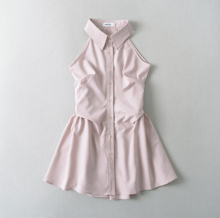 Summer New Pure Desire Style Slim Fit Slimming Waist Pleating Sleeveless Shirt Dress Polo Collar Dress