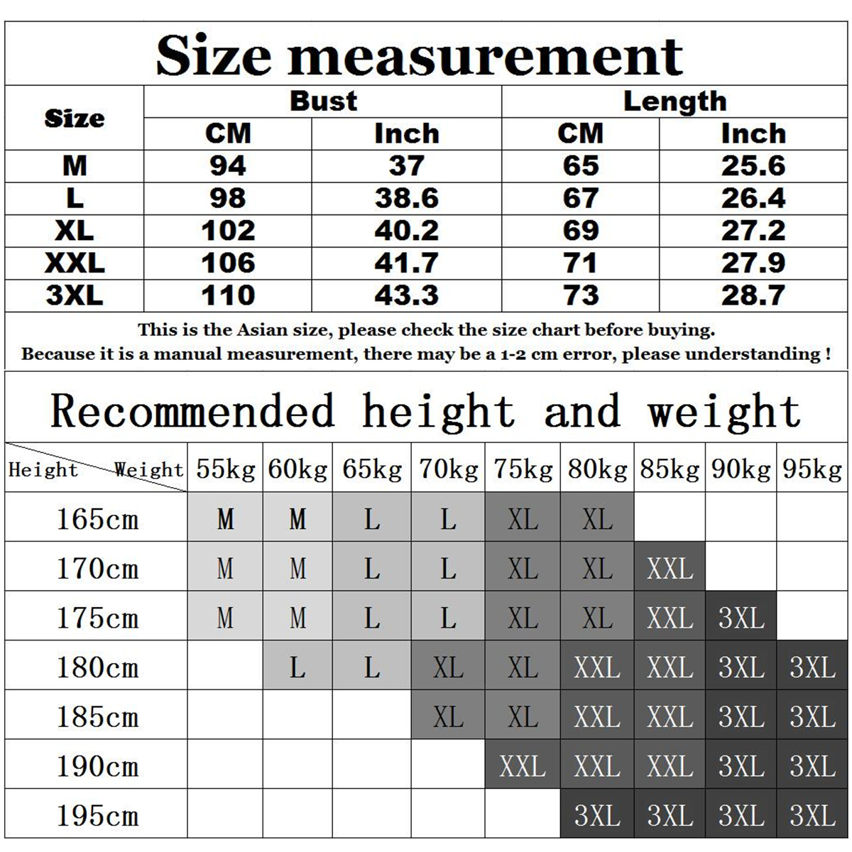 Note: 1. Asian sizes are 1 to 2 sizes smaller than European and American people. Choose the larger size if your size between two sizes. Please allow 2-3cm differences due to manual measurement. 2. Please check the size chart carefully before you buy the item, if you don't know how to choose size, please contact our customer service. 3.As you know, the different computers display colors differently, the color of the actual item may vary slightly from the following images.