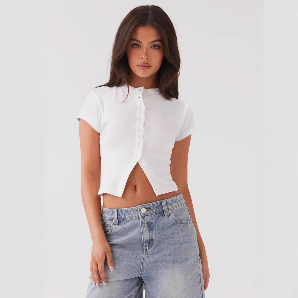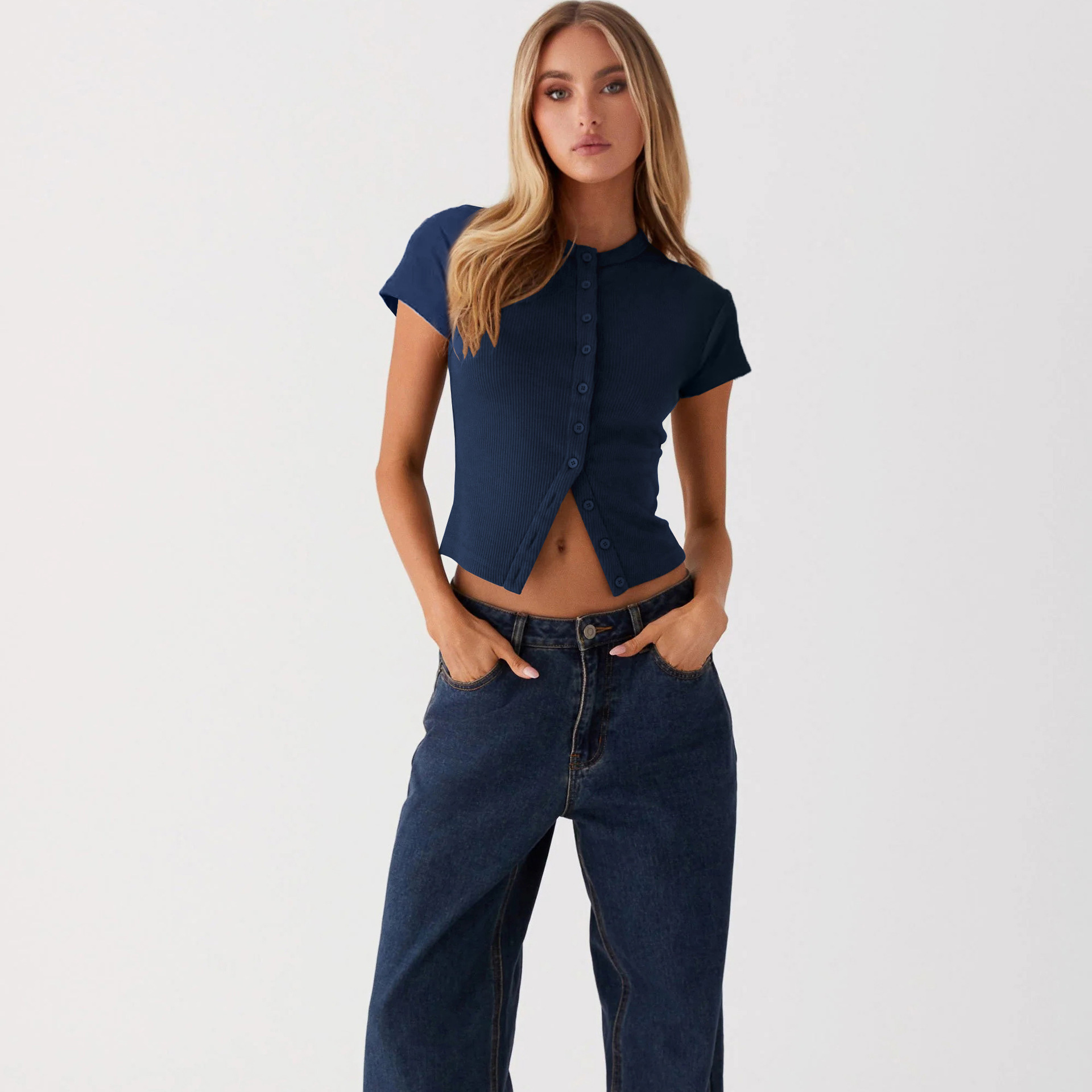 Summer New Slim-fit Buttoned Cardigan Short Sleeve T-shirt