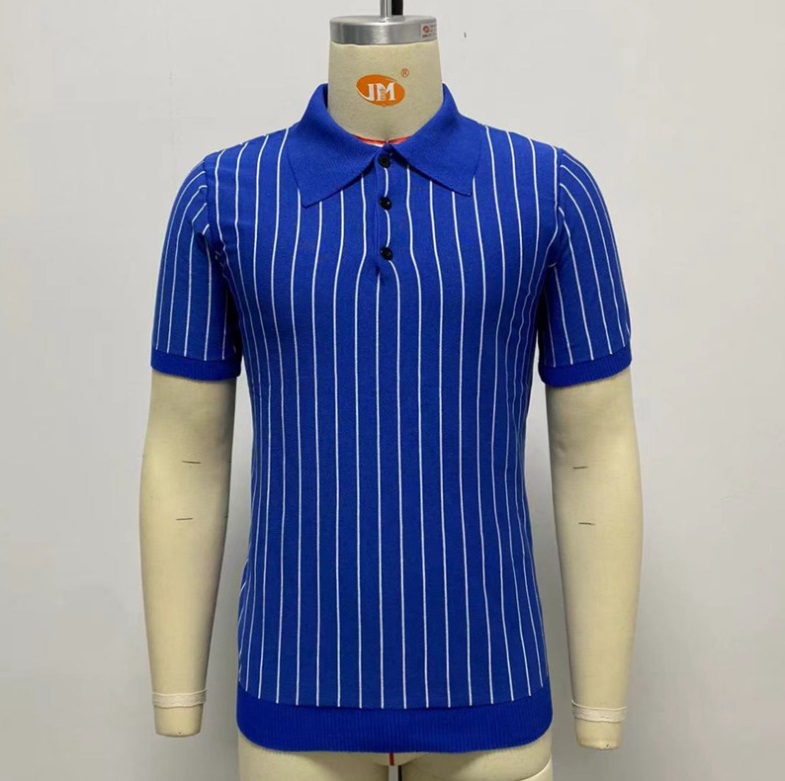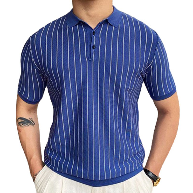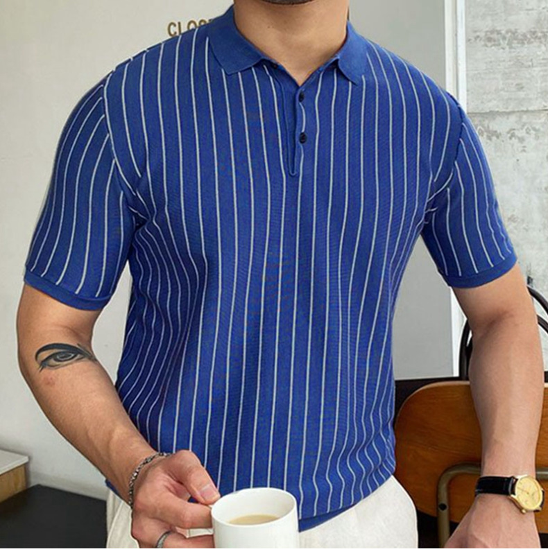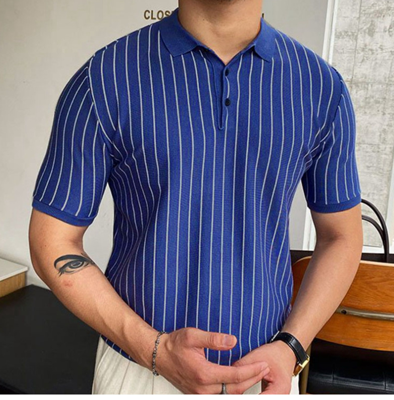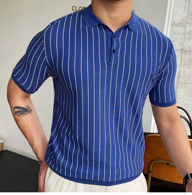 Summer New Striped Slim-fit Short Sleeve Lapel Business