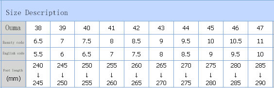 Sizes: 38, 39, 40, 41, 42, 43, 44, 45, 46, 47