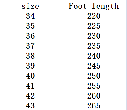 Size: 34, 35, 36, 37, 38, 39, 40, 41, 42, 43