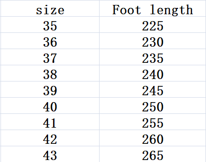 Size: 35, 36, 37, 38, 39, 40, 41, 42, 43