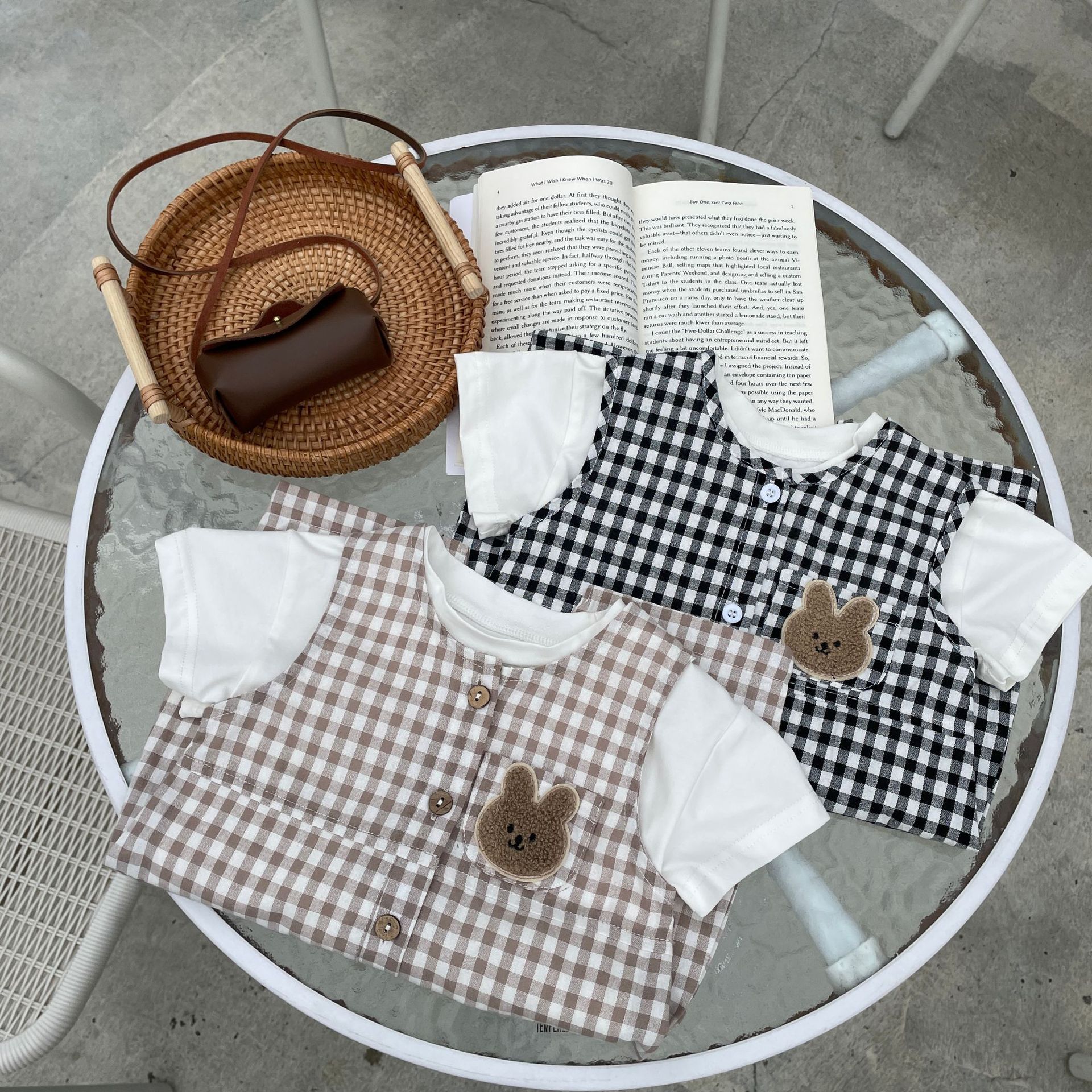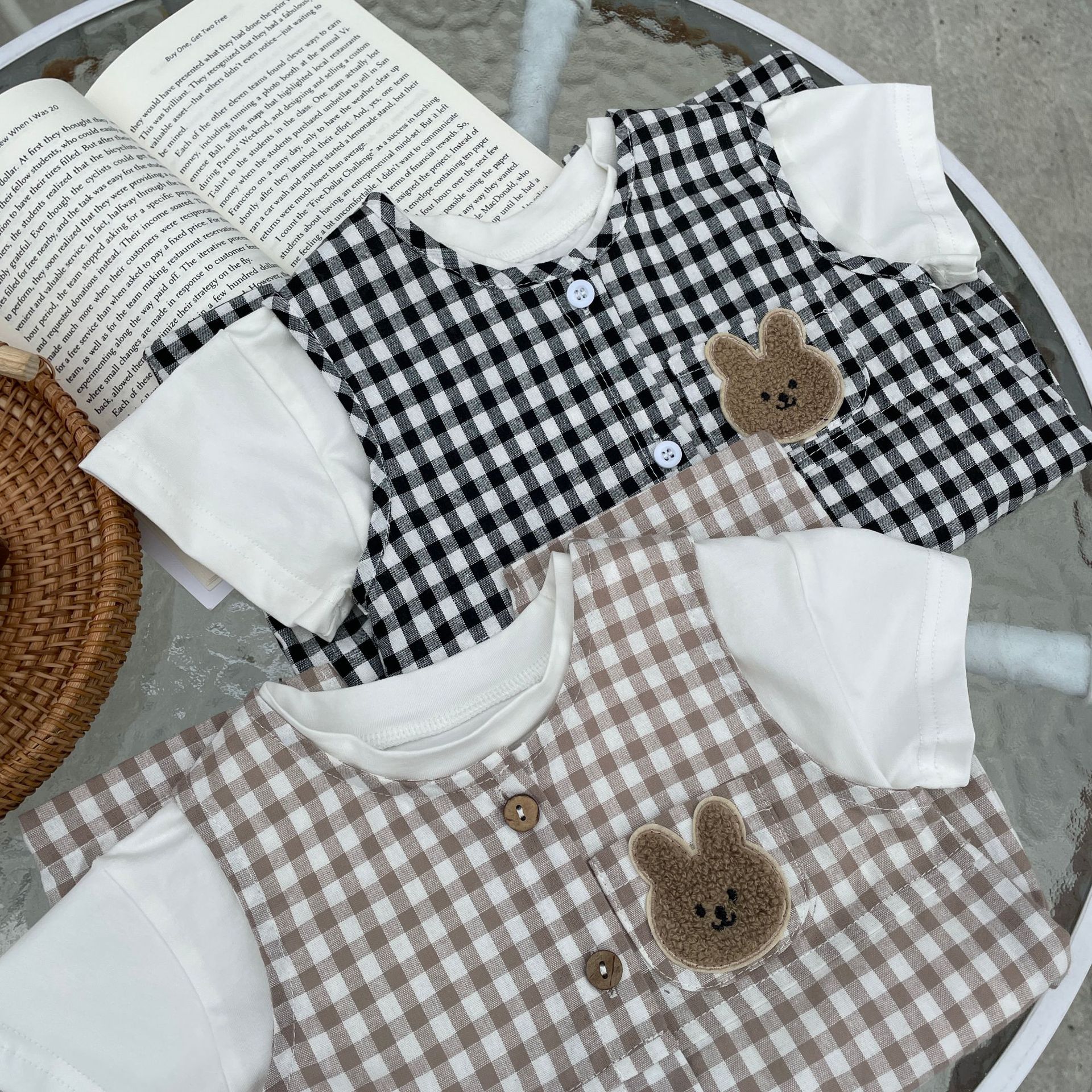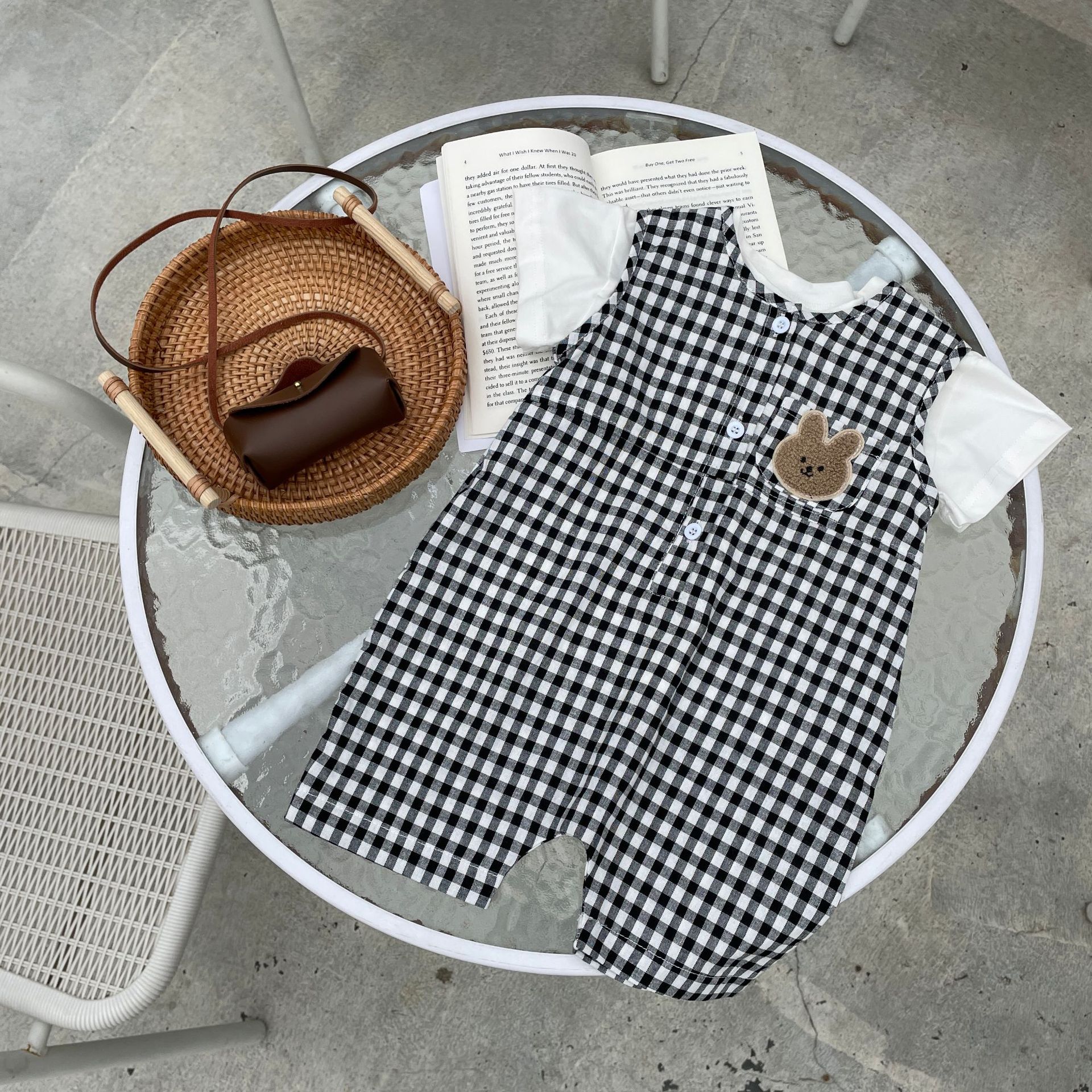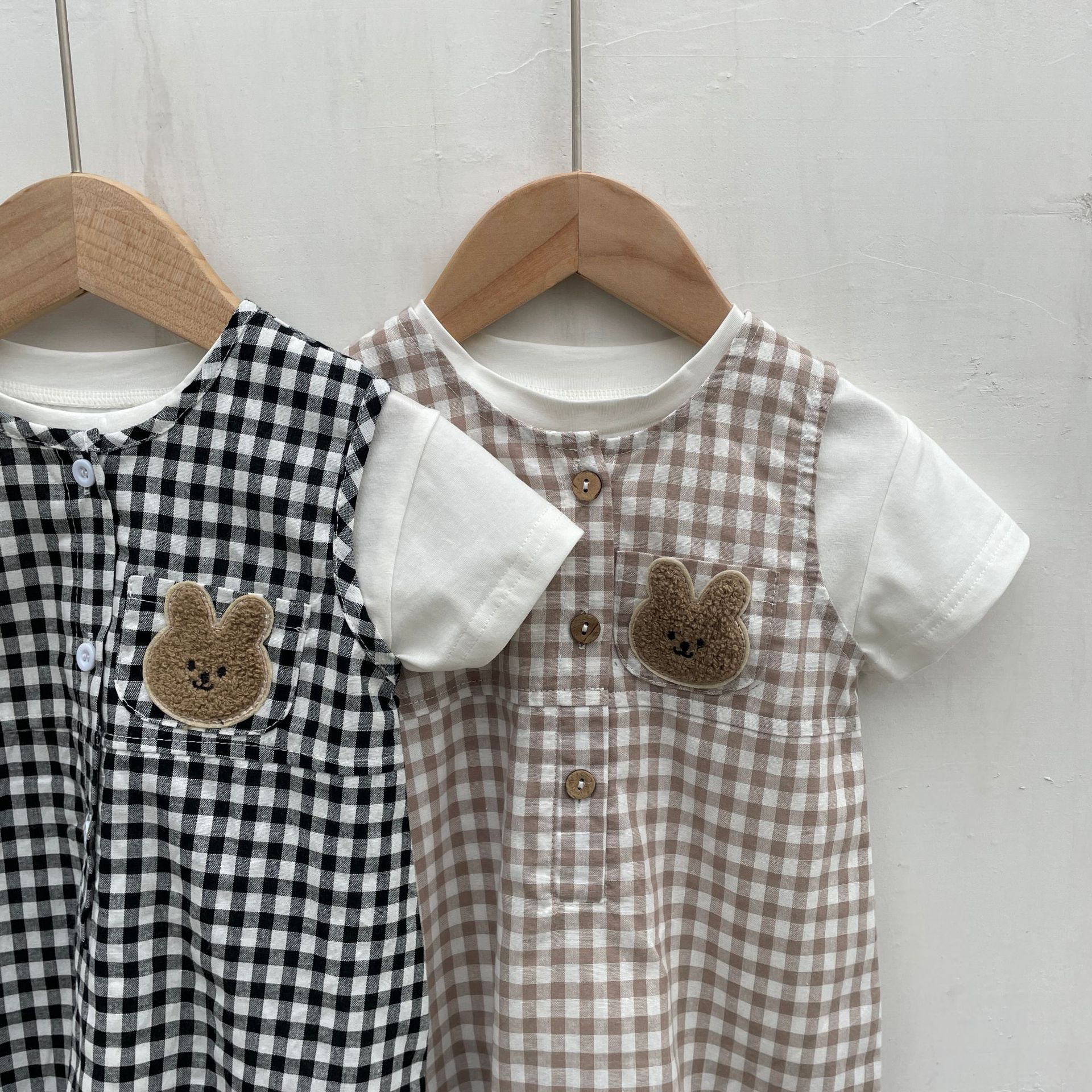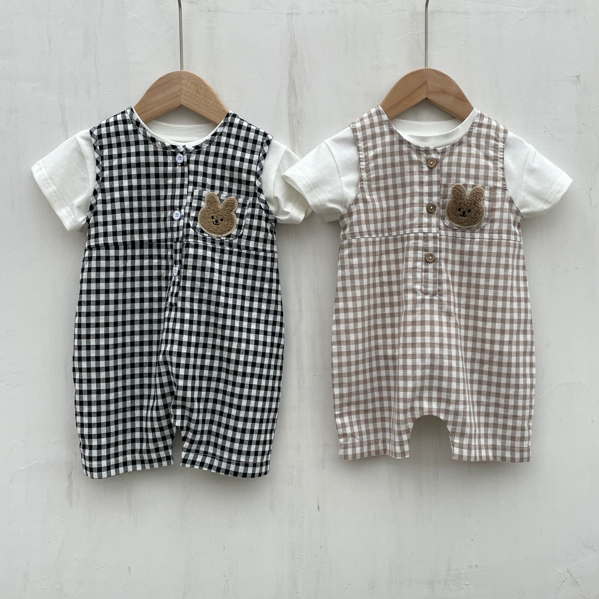 Color: black jumpsuit, khaki onesie, white T-shirt, black jumpsuit white T-shirt, khaki onesie white T-shirt