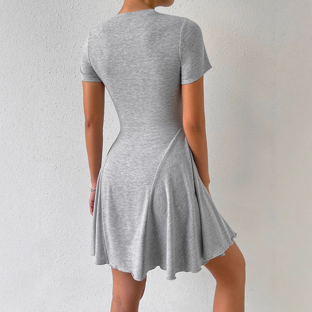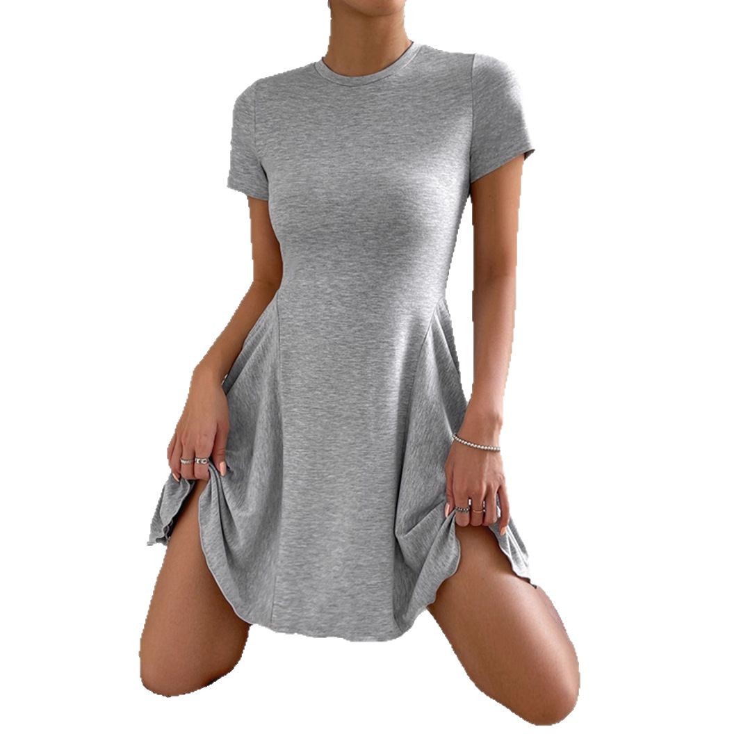 Summer New Womens Fashion French-Style Crew-Neck Short-Sleeve Dress