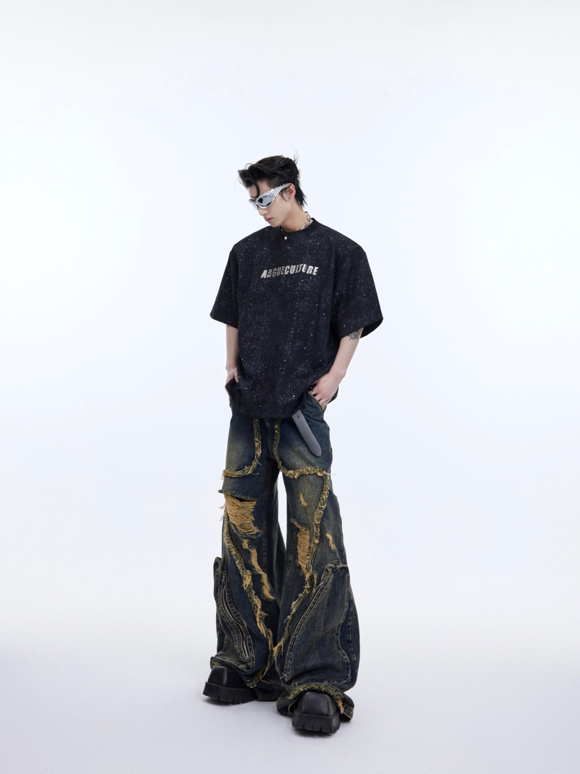 Summer Niche Thin And Glittering Design Sense Padded Shoulder Short Sleeve