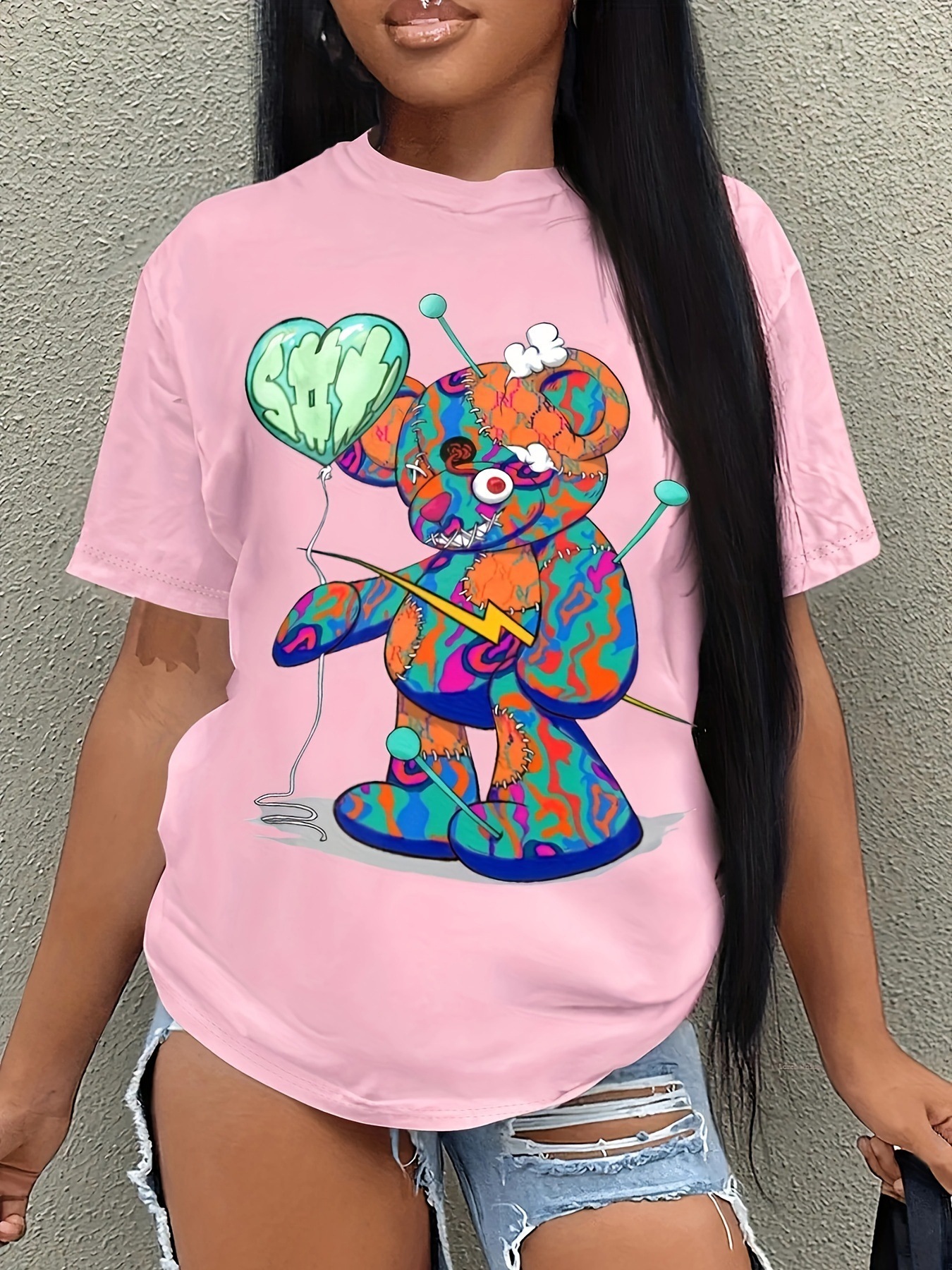 Summer Printed Street Fashion Sweet Short-sleeved T-shirt Casual Sports Plus Size Women's Clothing