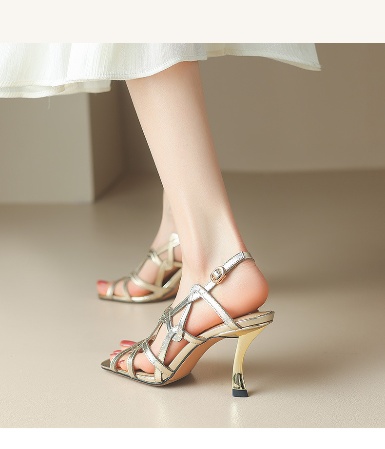 Shoe Upper material: Black Yangjing, Golden cowhide