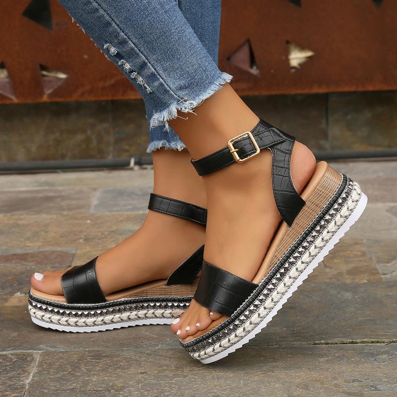Summer Sandals Buckle Strap Hemp Wedges Platform Peep Toe Shoes Women