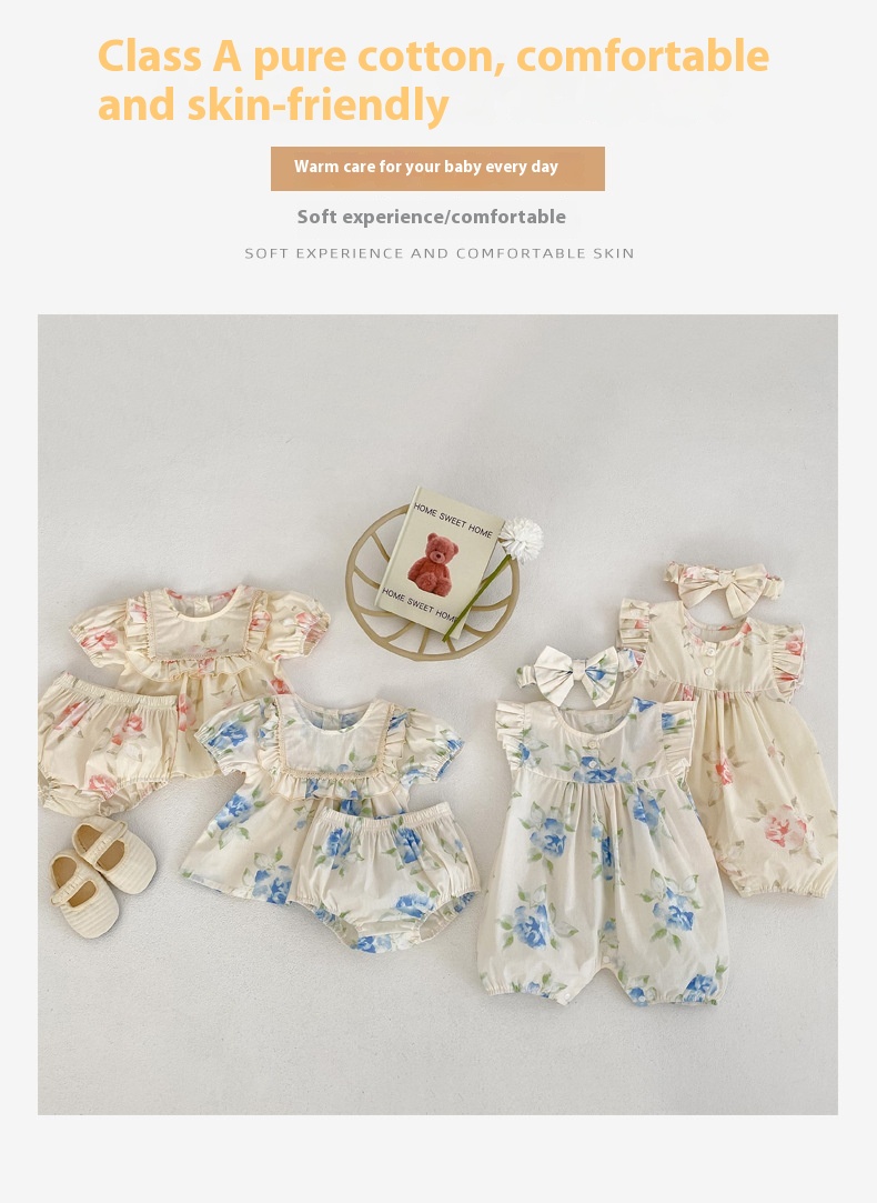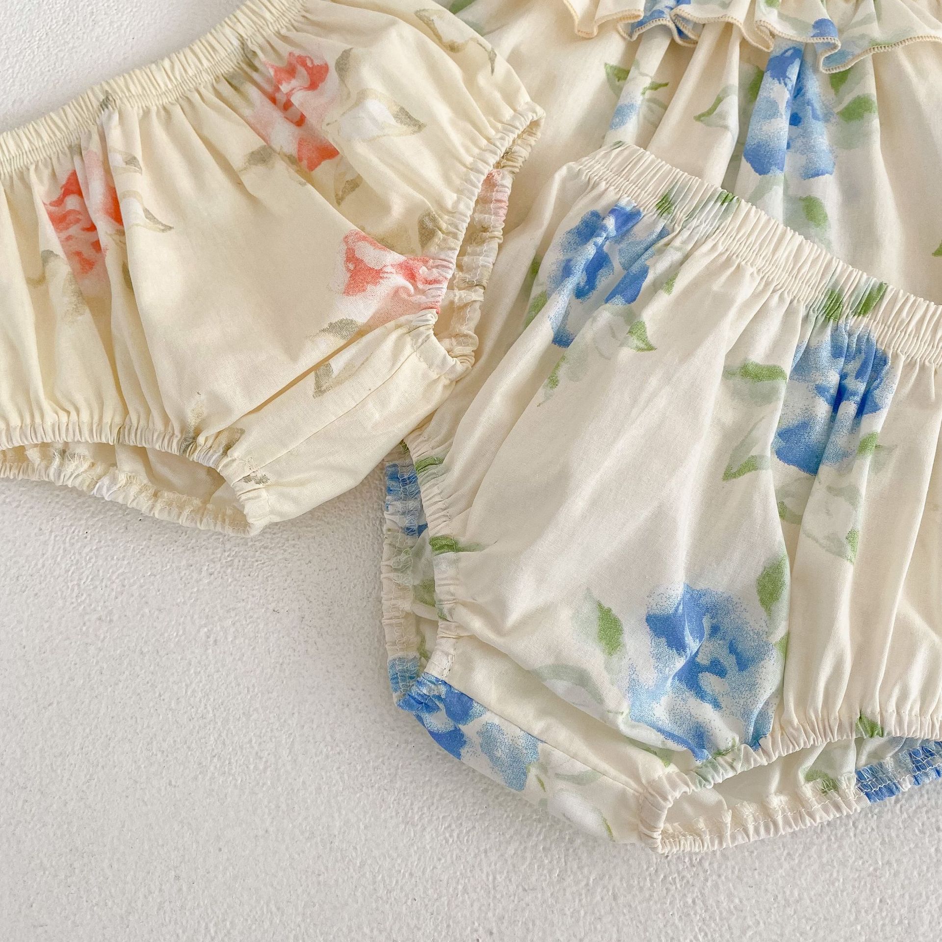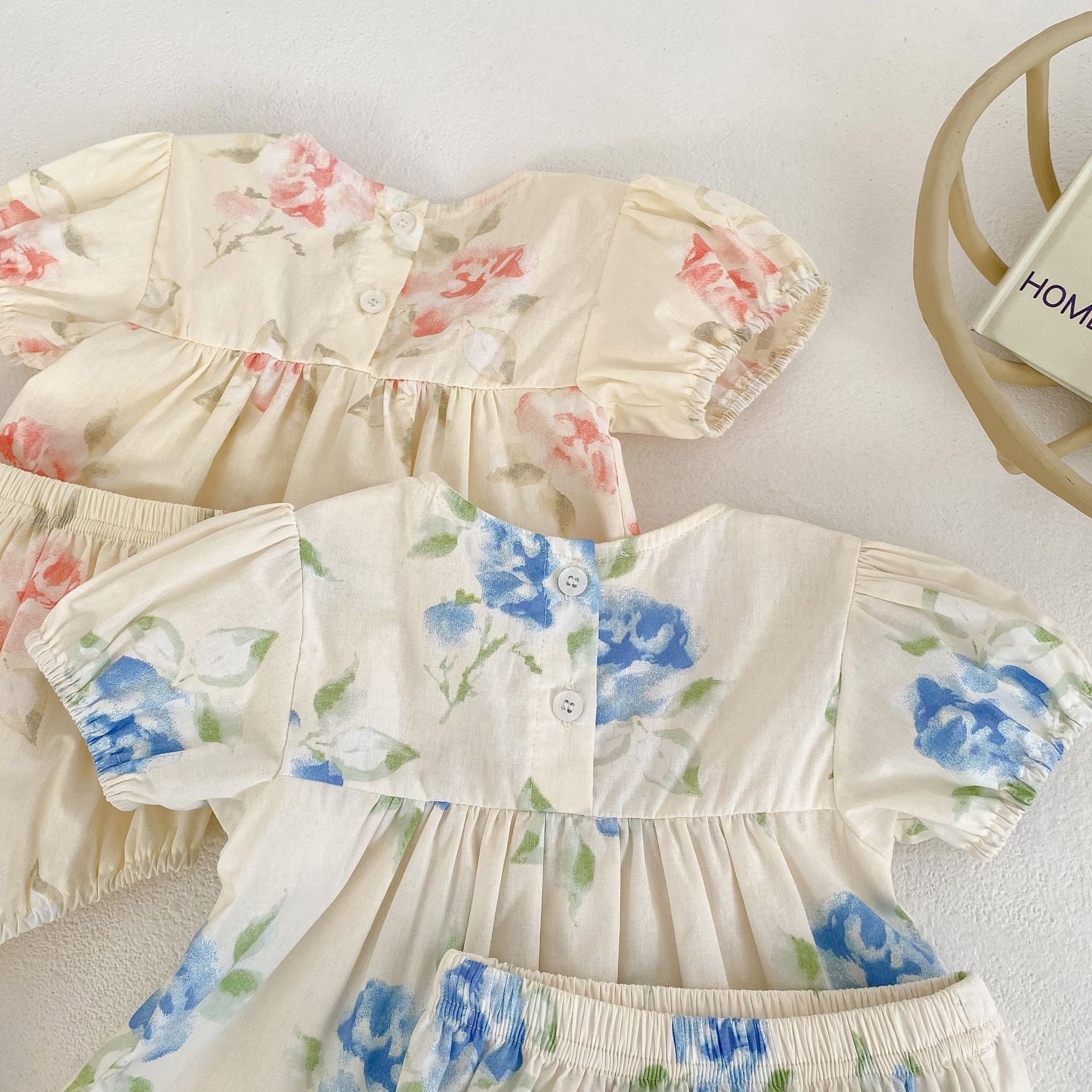 Color: pink flower suit, blue flower printing suit suit, pink jumpsuit, blue jumpsuit