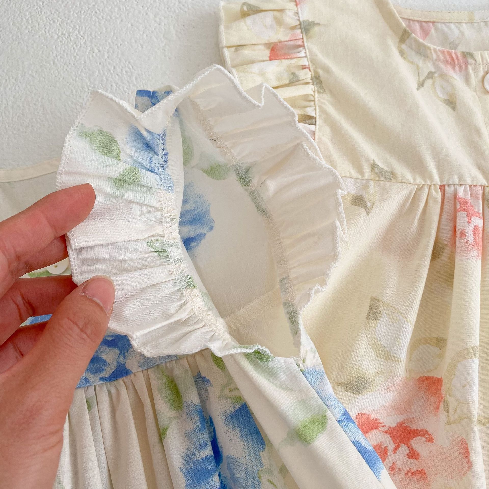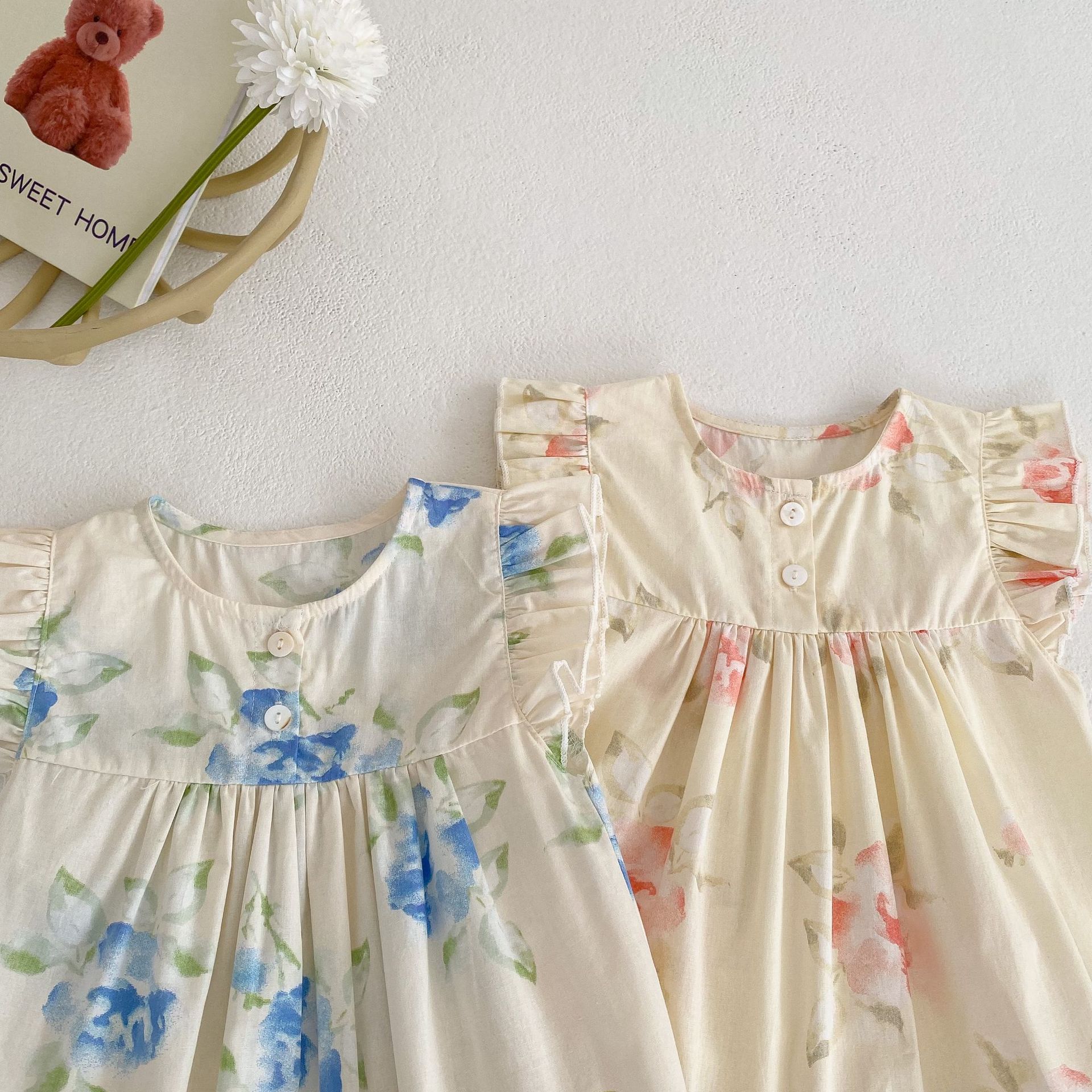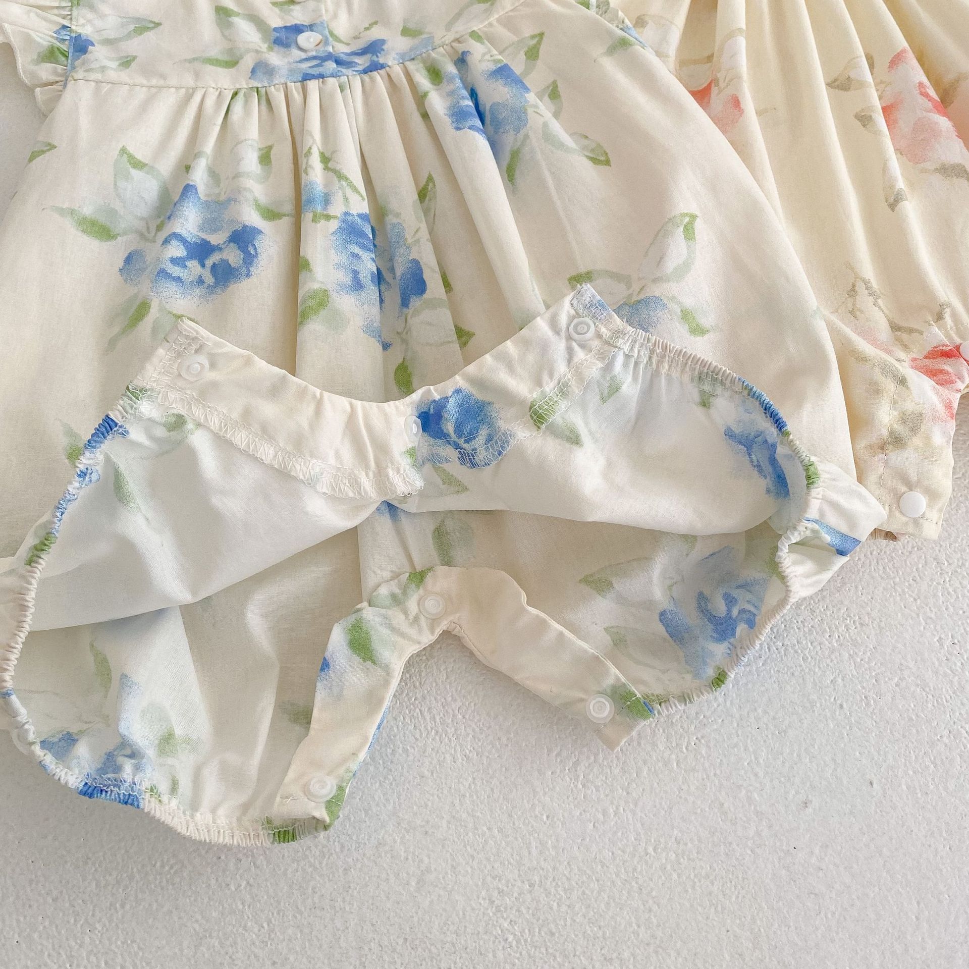 Color: pink flower suit, blue flower printing suit suit, pink jumpsuit, blue jumpsuit