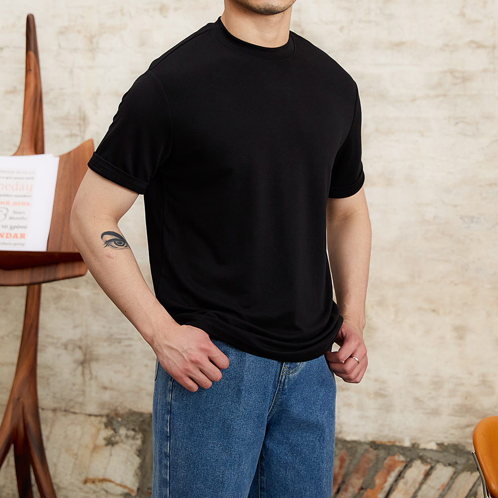 Summer Skin-friendly Soft Glutinous Draping Short Sleeve Round Neck T-shirt Casual Stretch Men