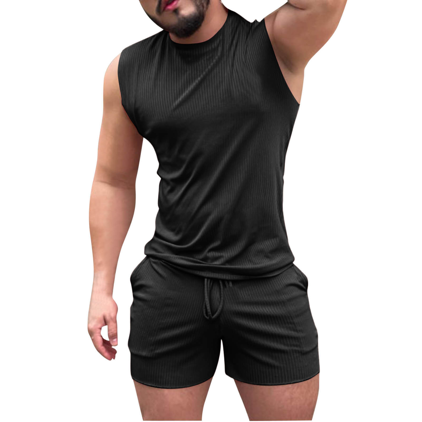 Summer Sleeveless Shorts Sports Black Cotton Vest Non-hooded Clothing