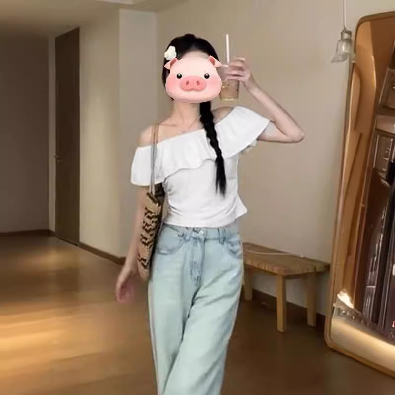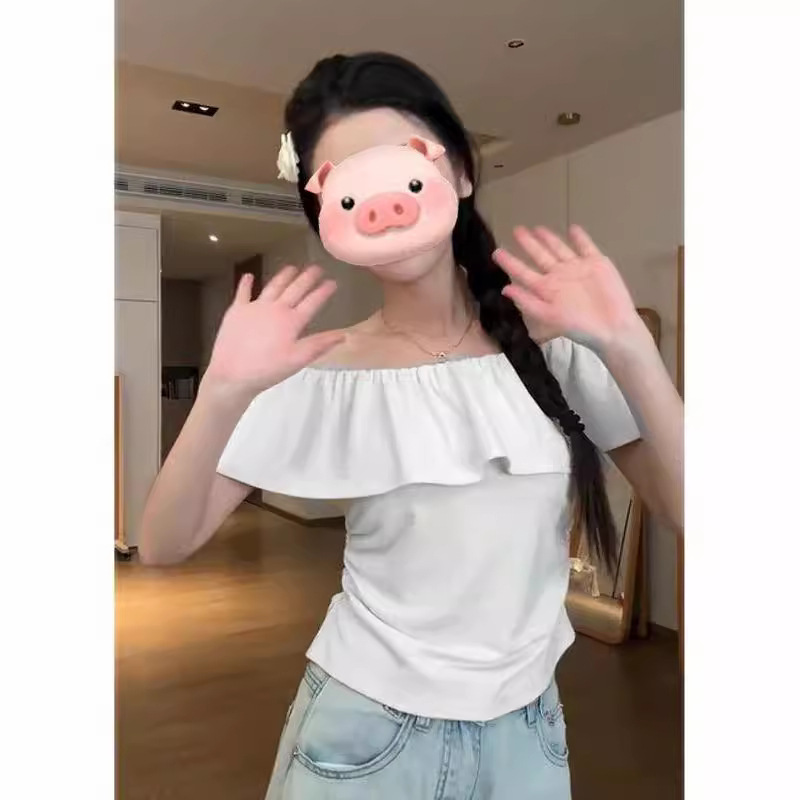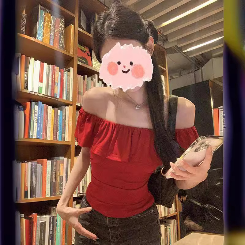 Summer Slim-fit Pleated Ruffled Red Short Top For Women