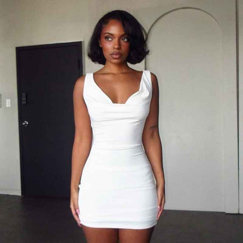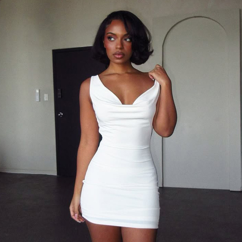 Summer Slim It Chain Strap Open Back Off Shoulder Sleeveless Dress