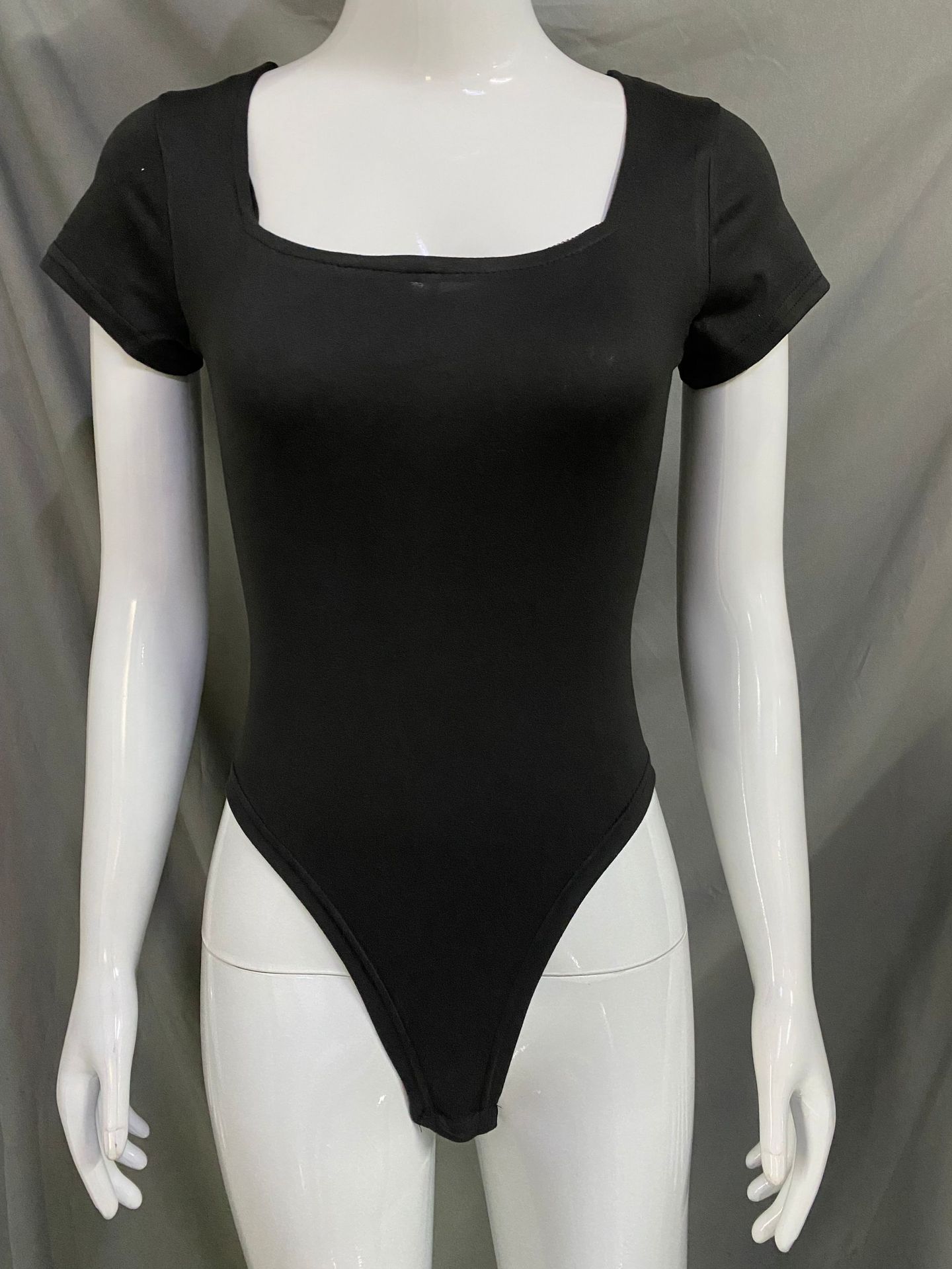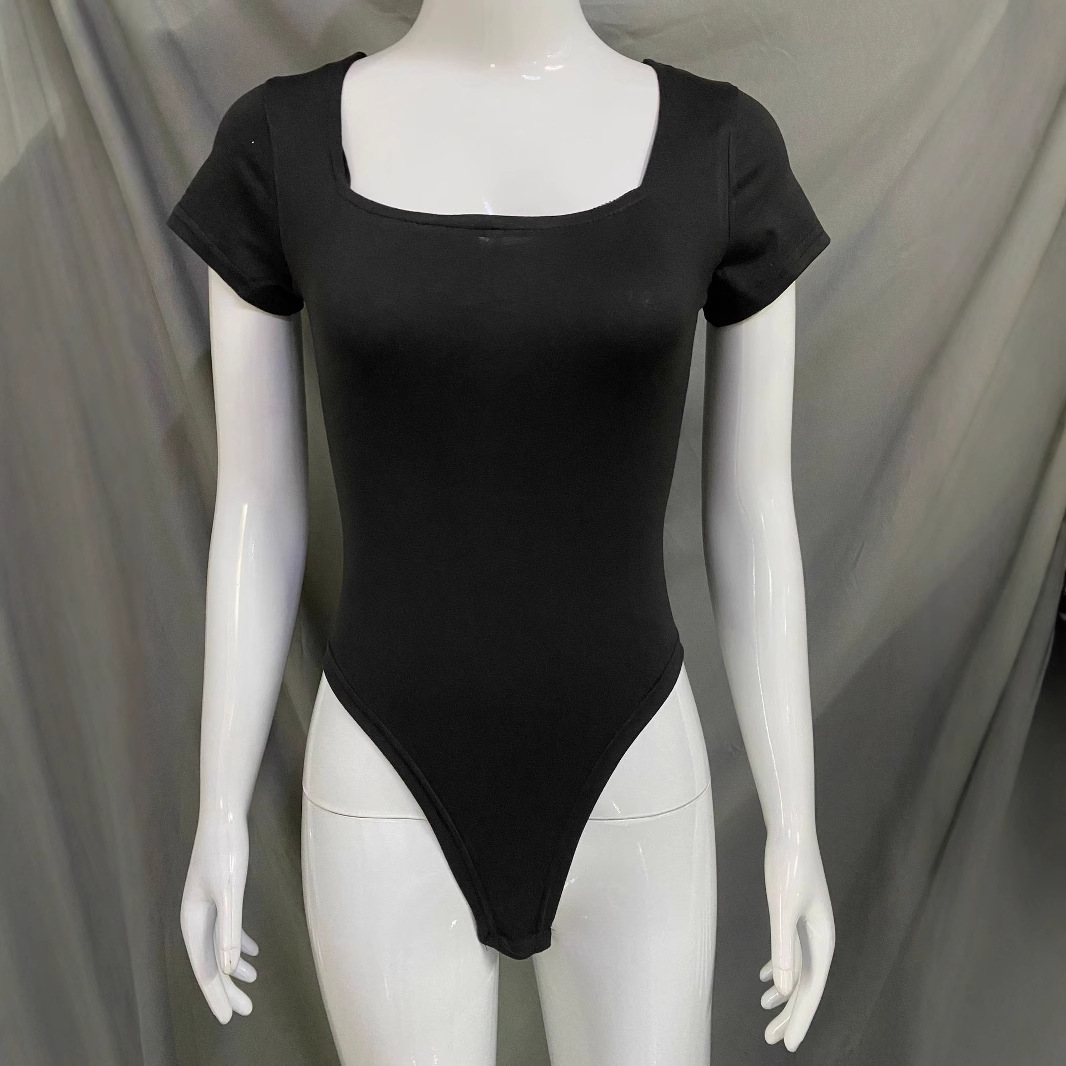 Features: High waist, slim fit, cropped length, boat neck, strapless, three-quarter sleeves, solid color, patchwork design