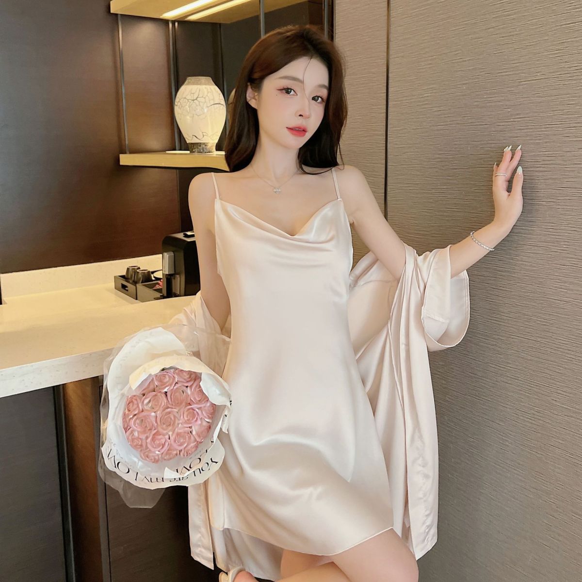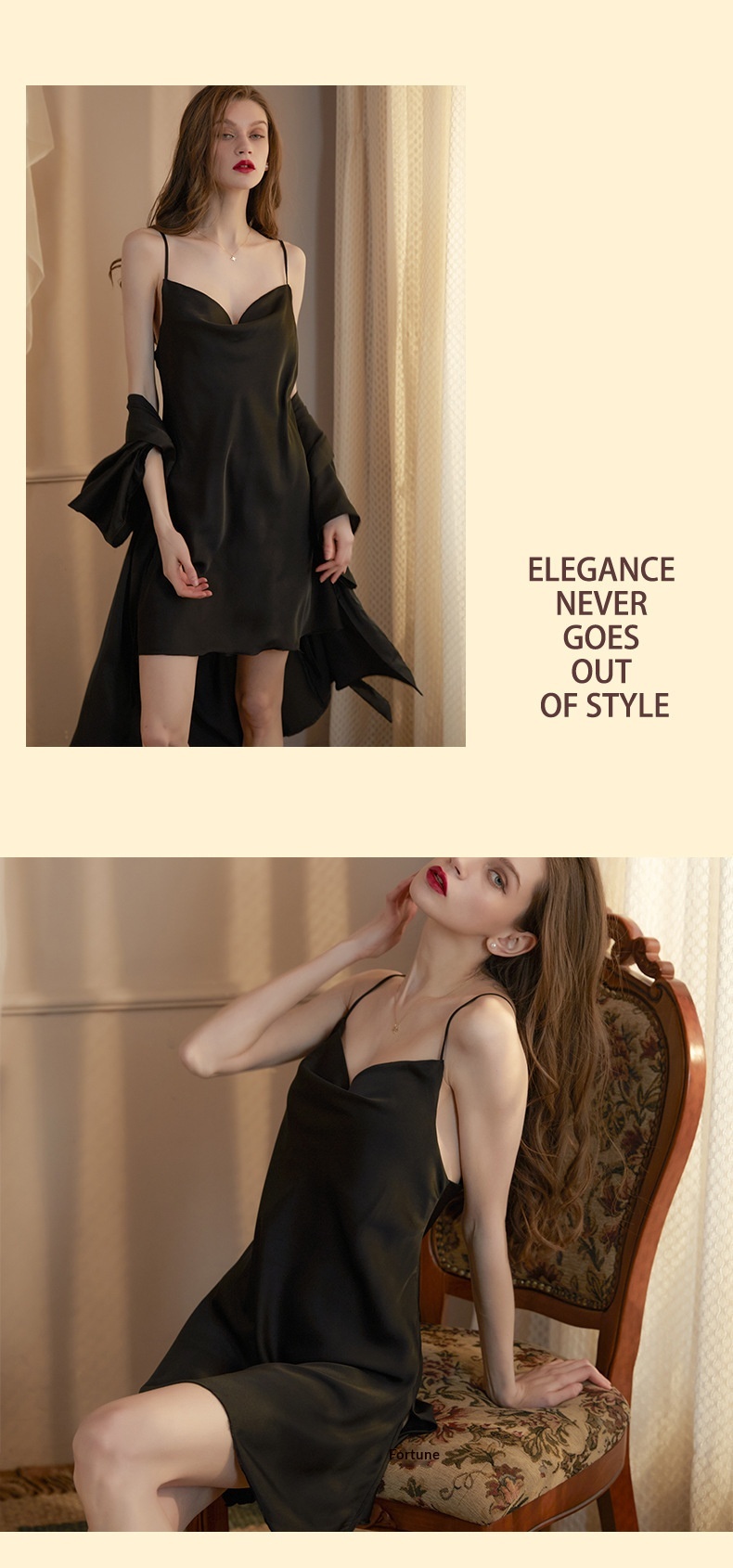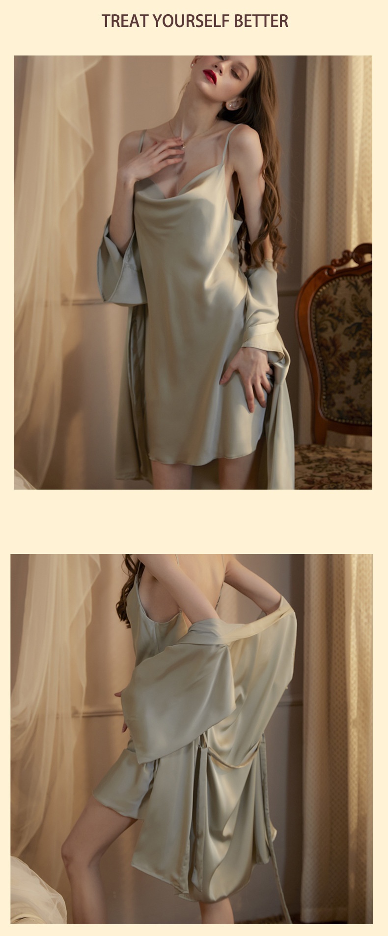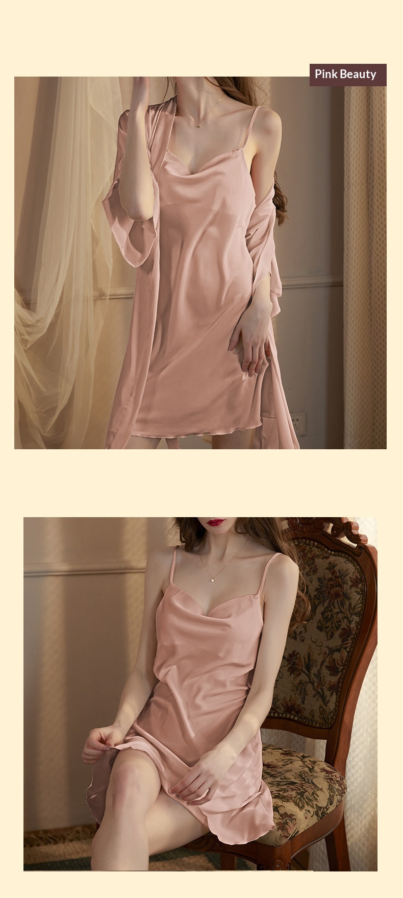 Colors: Champagne [2-piece set], Dark Green [2-piece set], Wine Red [2-piece set], Black [2-piece set], Pea Green [2-piece set], Off-White [2-piece set], Bean Paste Pink [2-piece set]