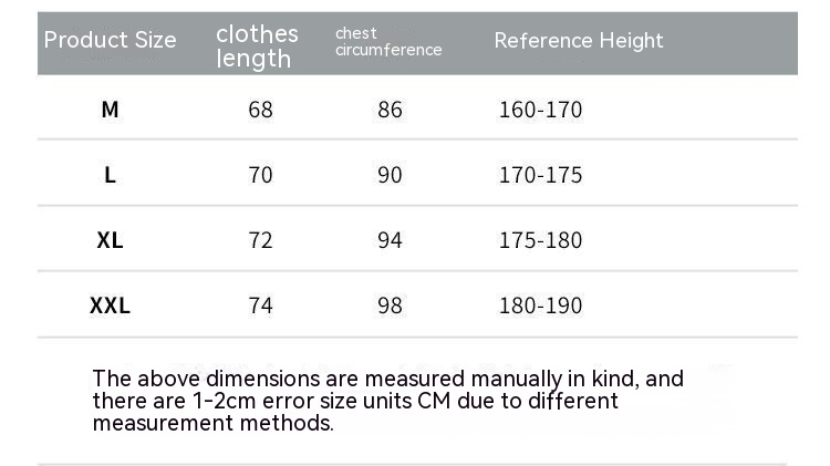 1. Asian sizes are 1 to 2 sizes smaller than European and American people. Choose the larger size if your size between two sizes. Please allow 2-3cm differences due to manual measurement. 2. Please check the size chart carefully before you buy the item, if you don't know how to choose size, please contact our customer service. 3.As you know, the different computers display colors differently, the color of the actual item may vary slightly from the following images.