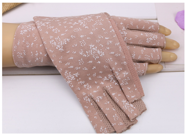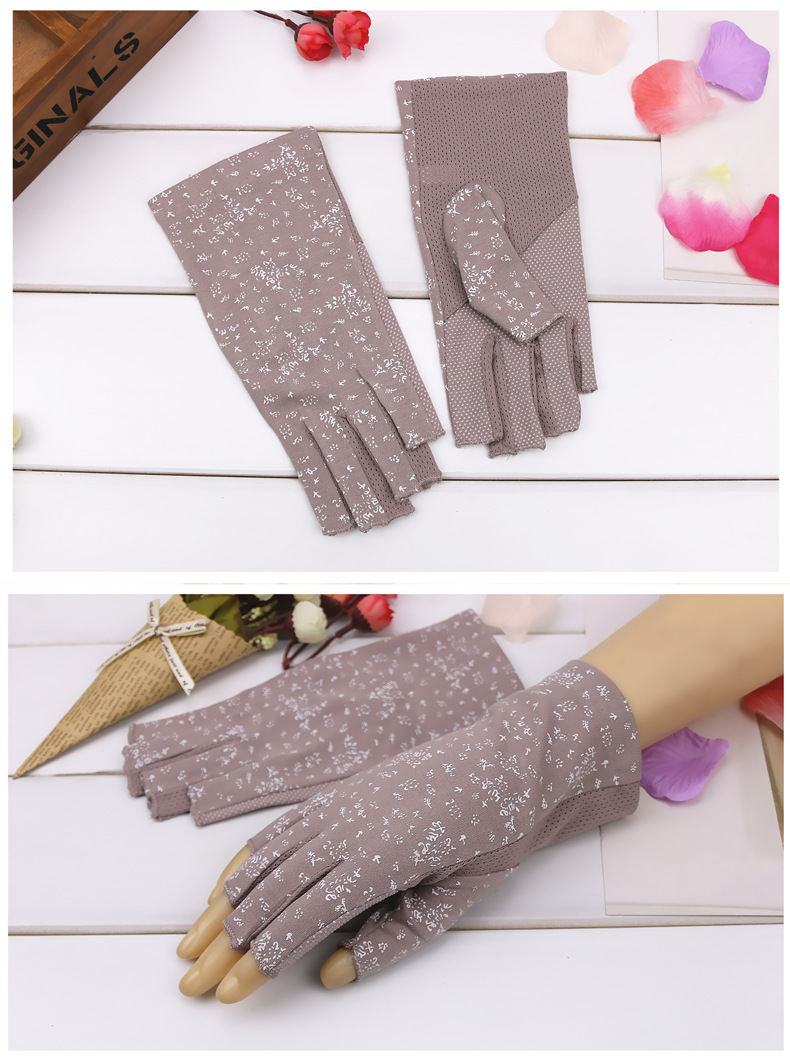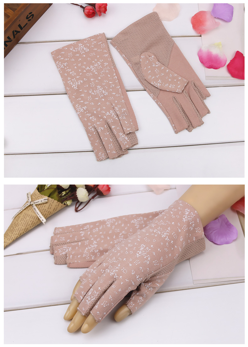Color: floral half finger dark purple, floral half finger khaki, floral half finger light gray, floral half finger skin pink floral half finger light pink, floral half finger black, dot half finger dark purple, dot half finger khaki, dot half finger light gray, small half finger black, small half finger skin pink small half finger light color pink