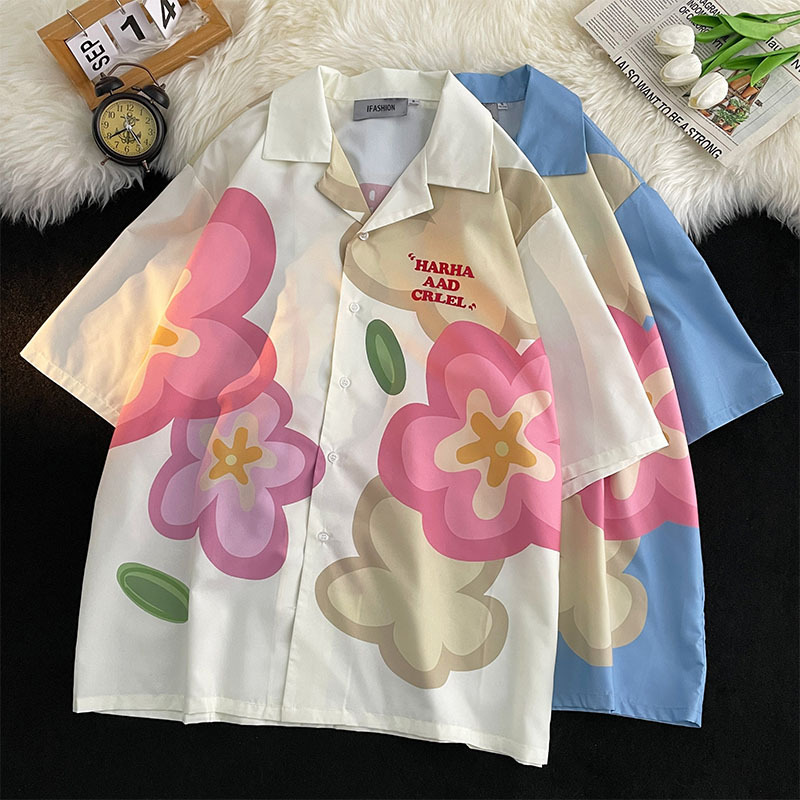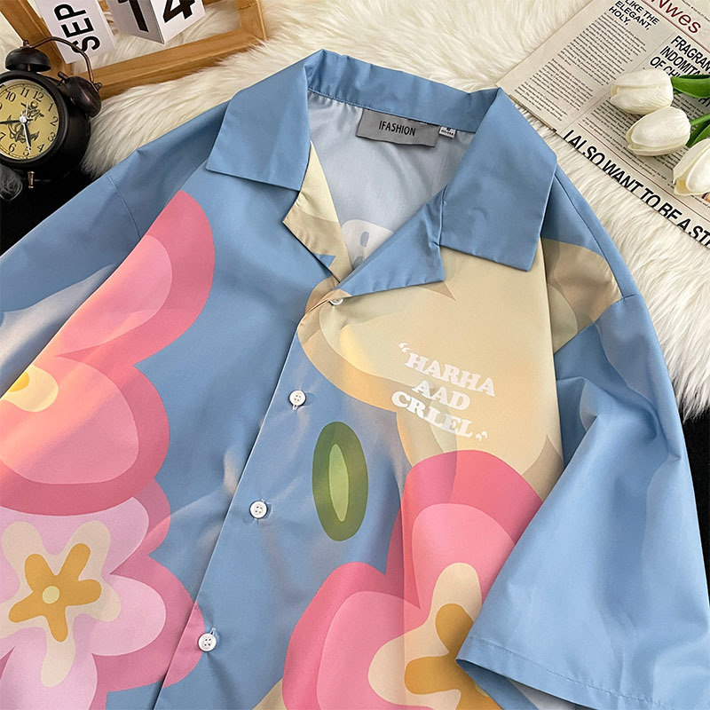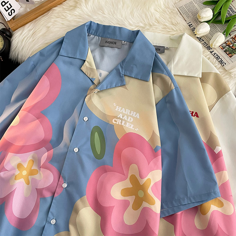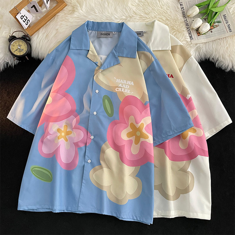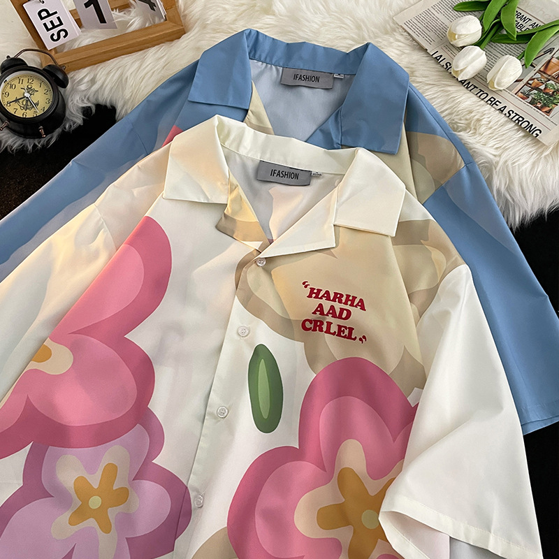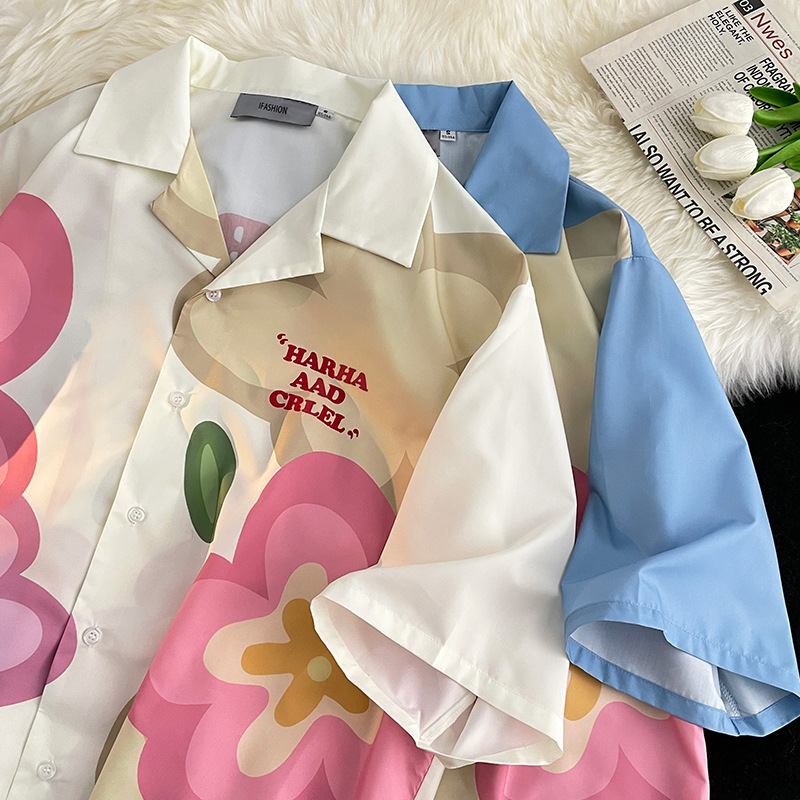 Summer Thin Couple Casual Printed Short Sleeves Shirt
