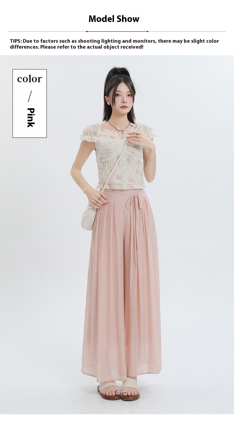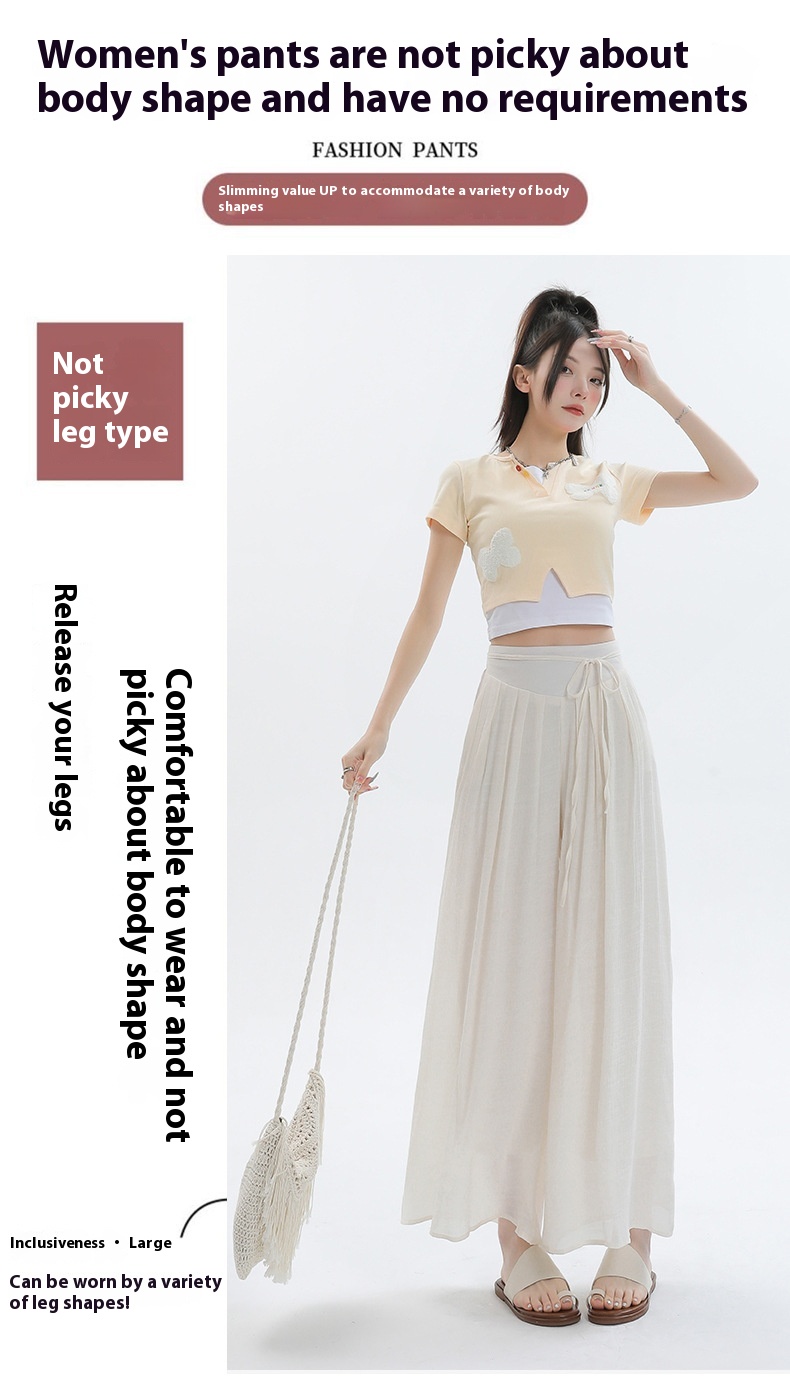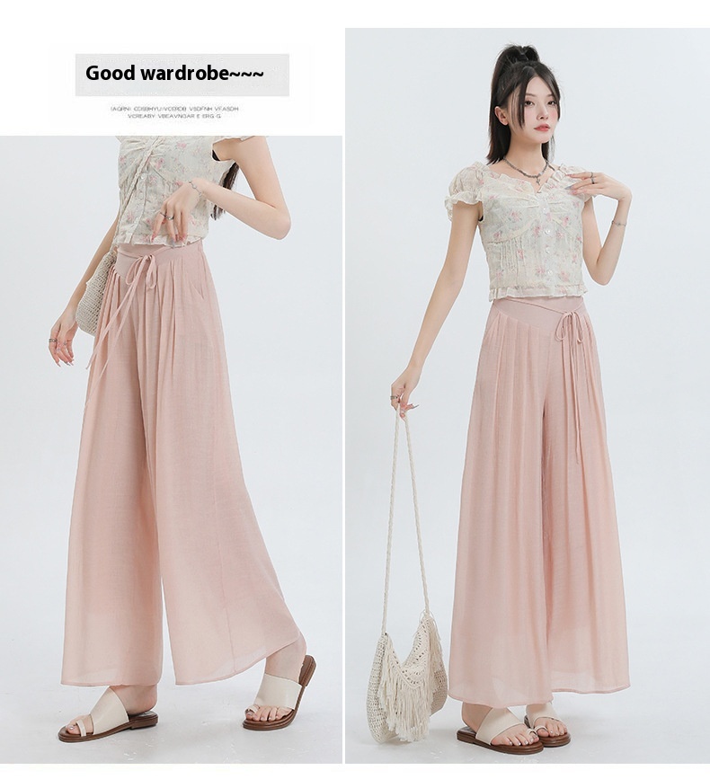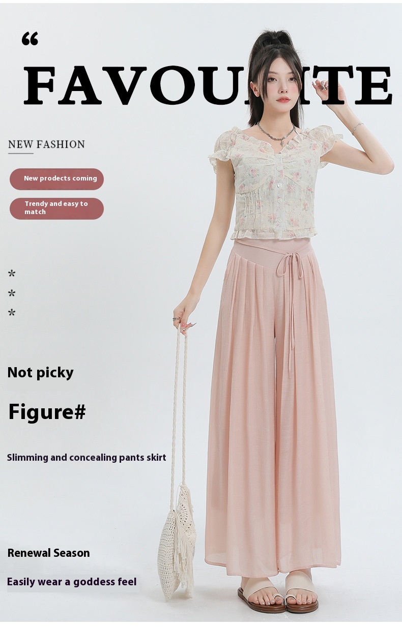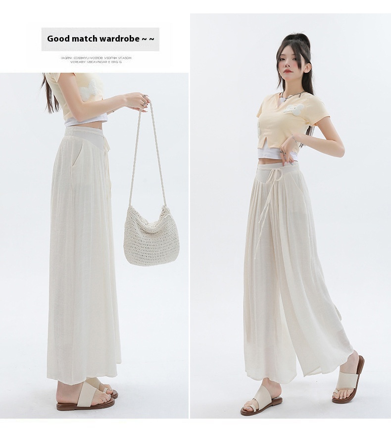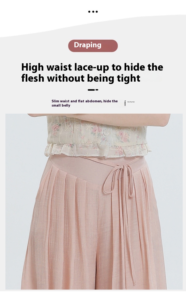 Summer Thin Design High Waist With Straps Slimming And Straight Drape Cropped Wide-leg Pants Skirt