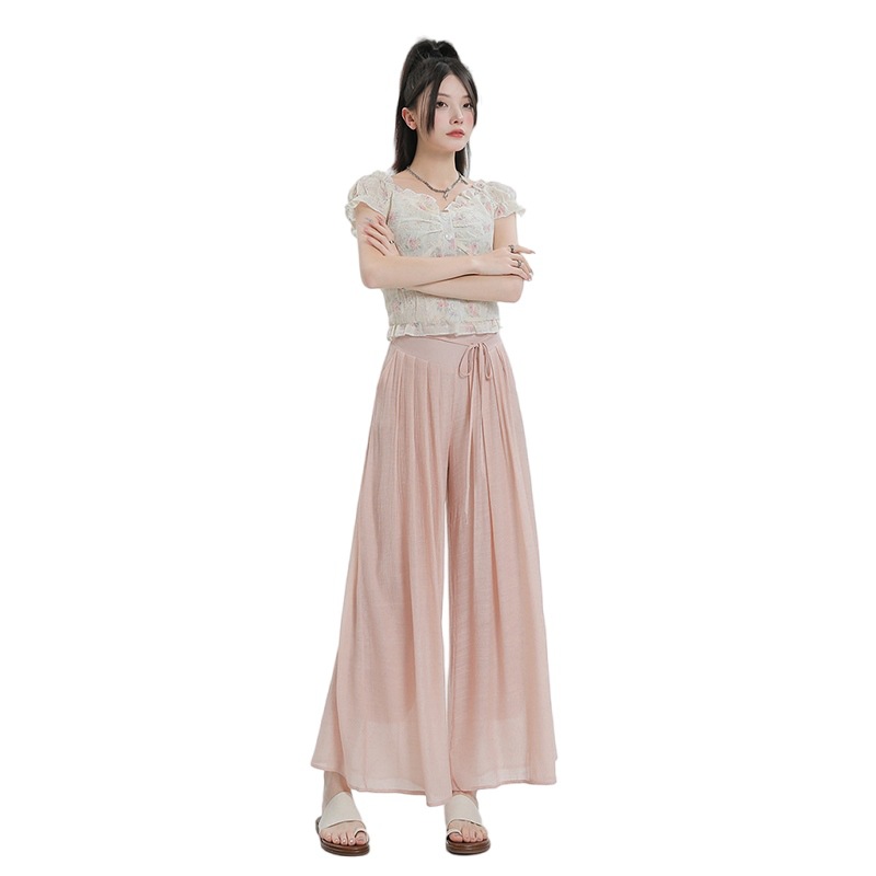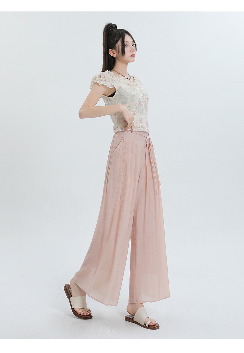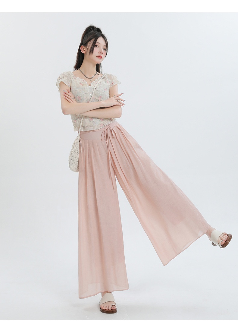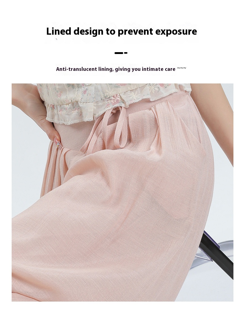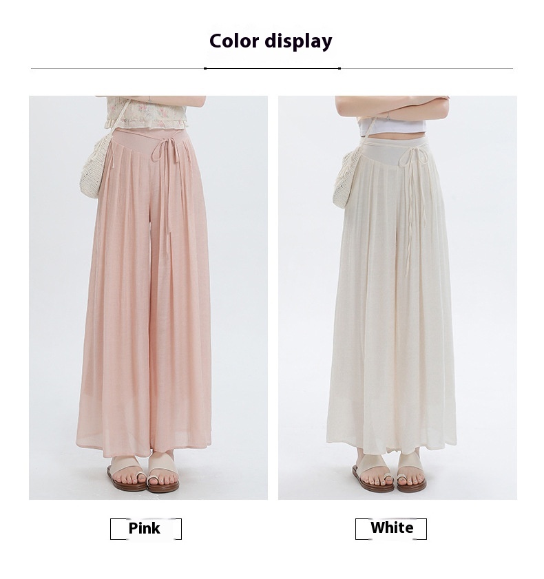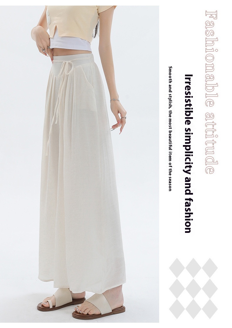 Summer Thin Design High Waist With Straps Slimming And Straight Drape Cropped Wide-leg Pants Skirt