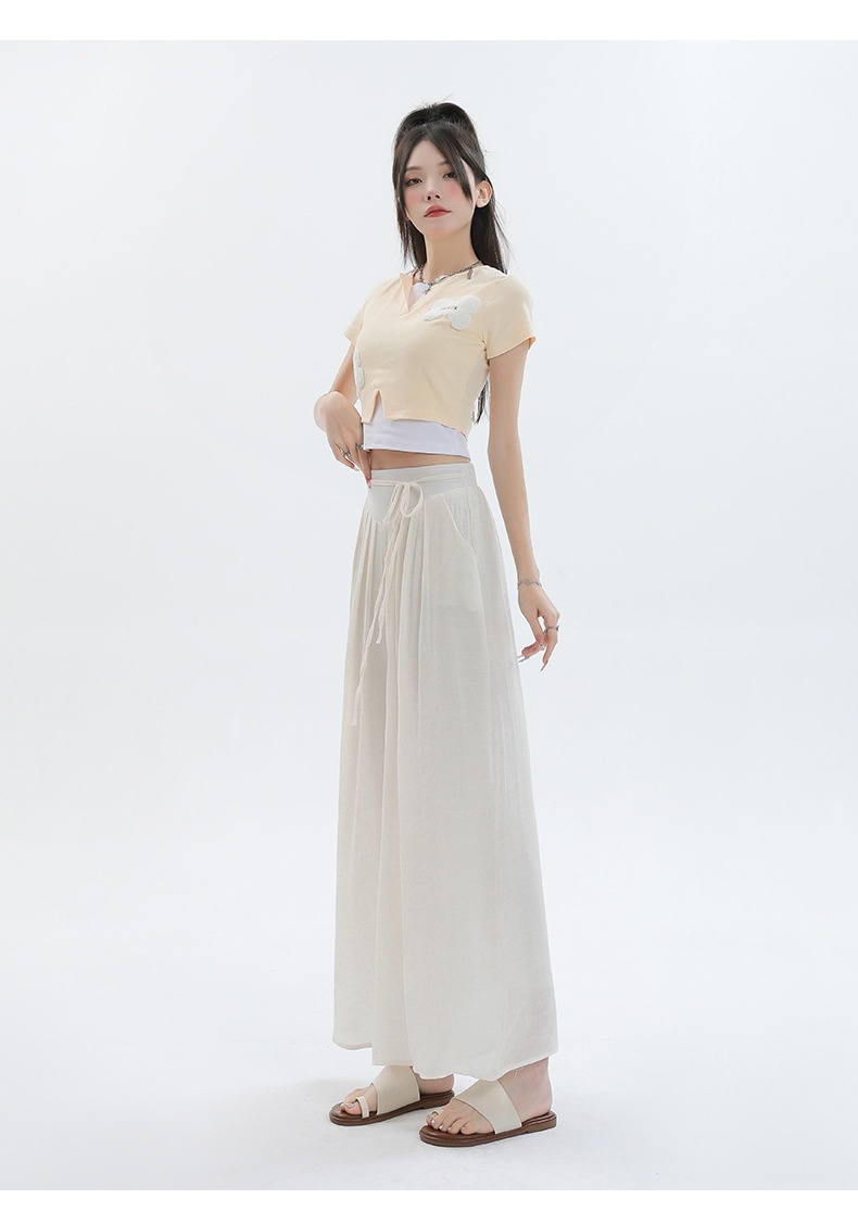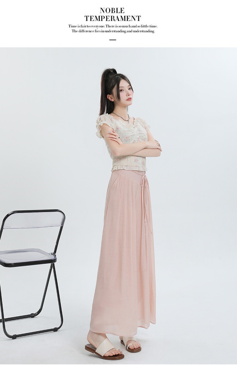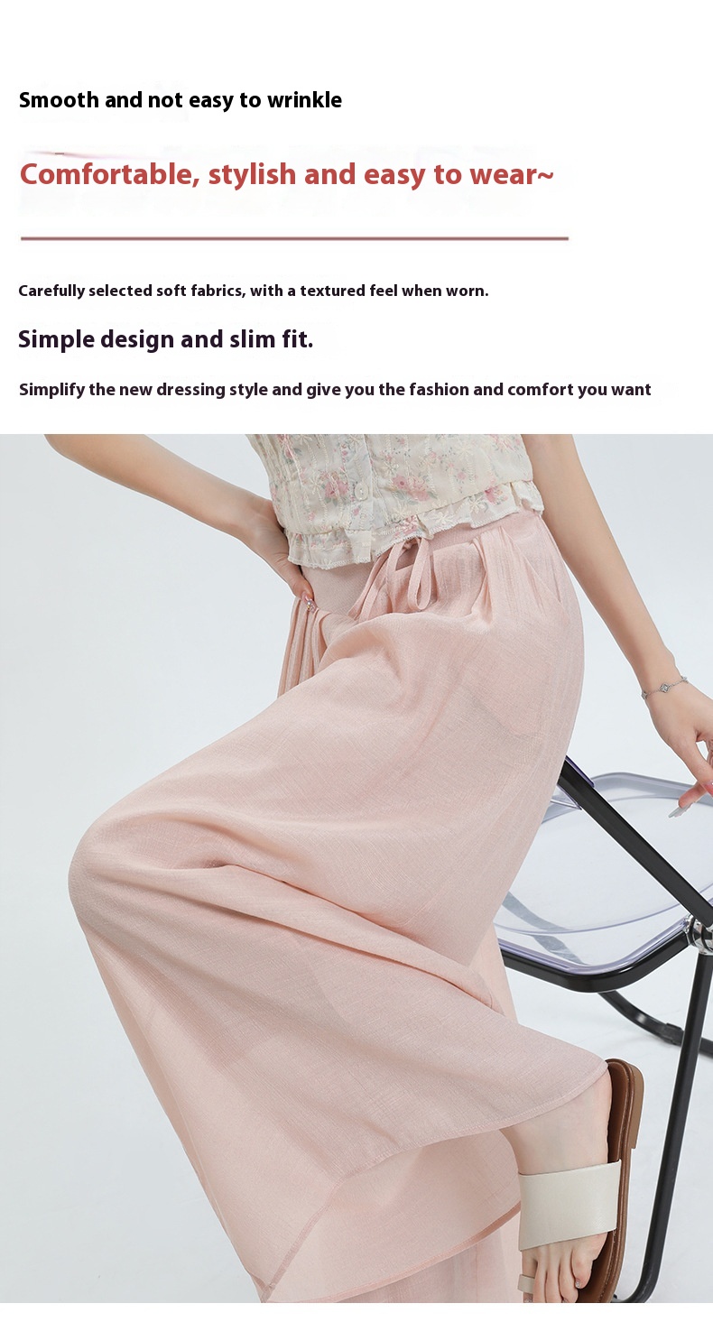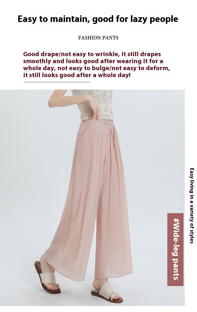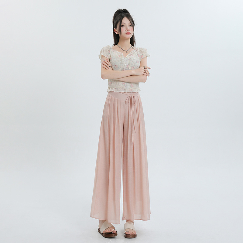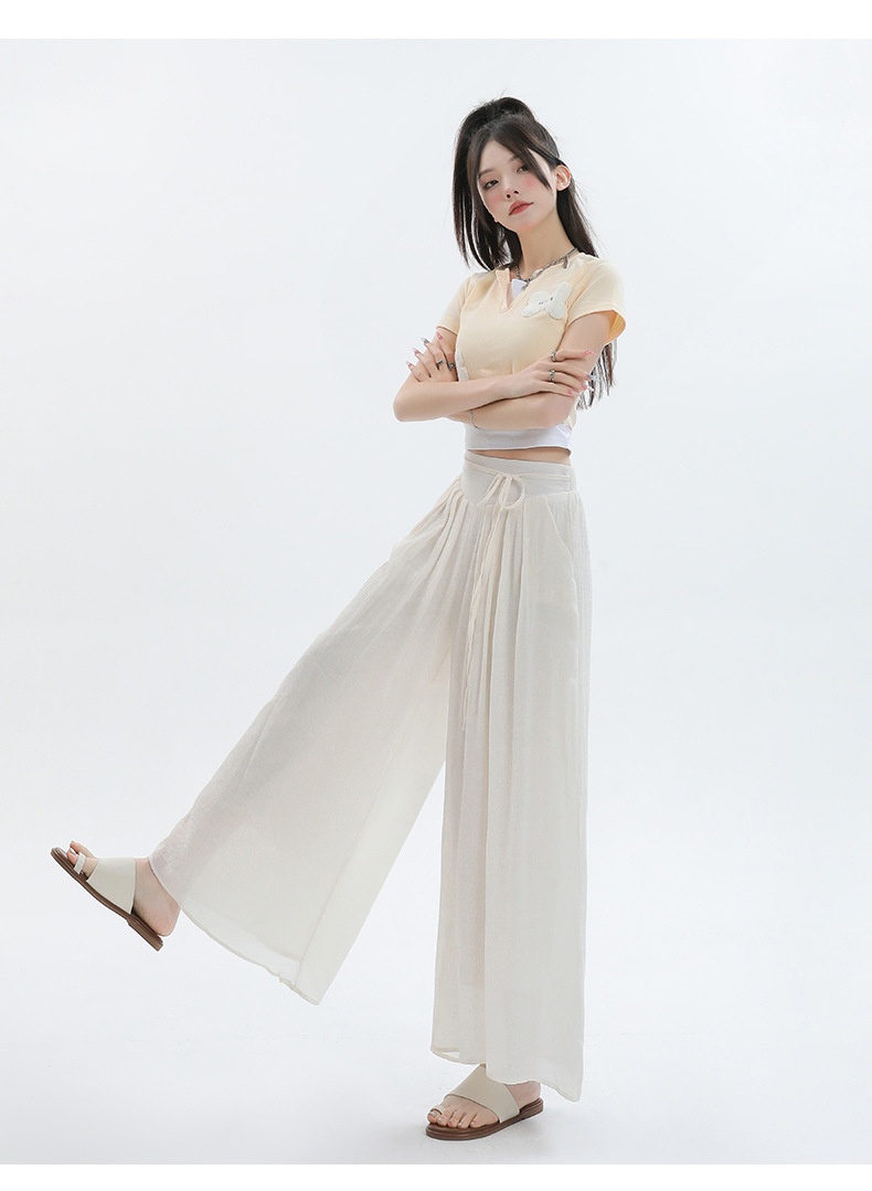 Summer Thin Design High Waist With Straps Slimming And Straight Drape Cropped Wide-leg Pants Skirt