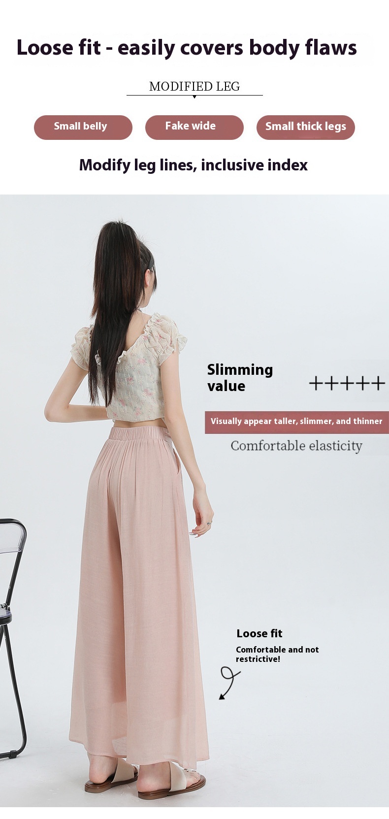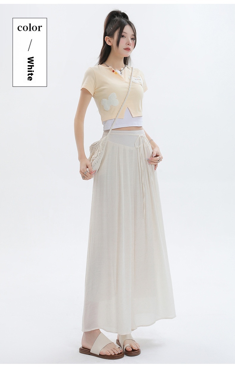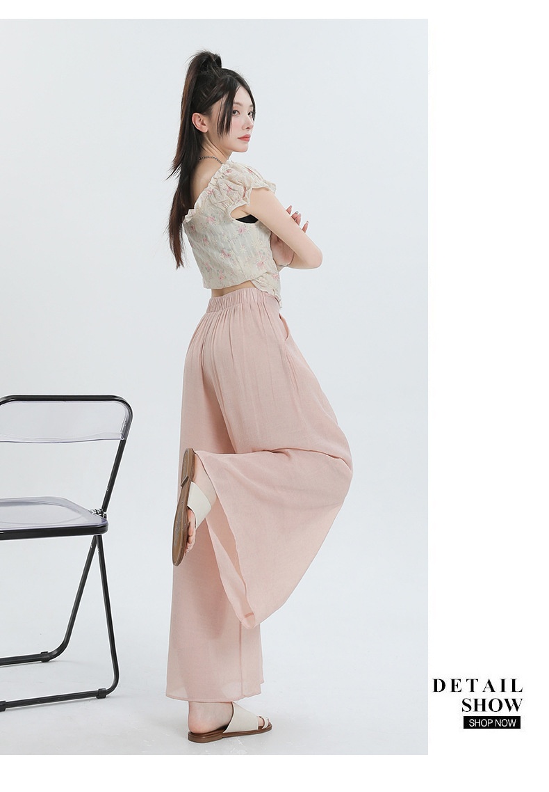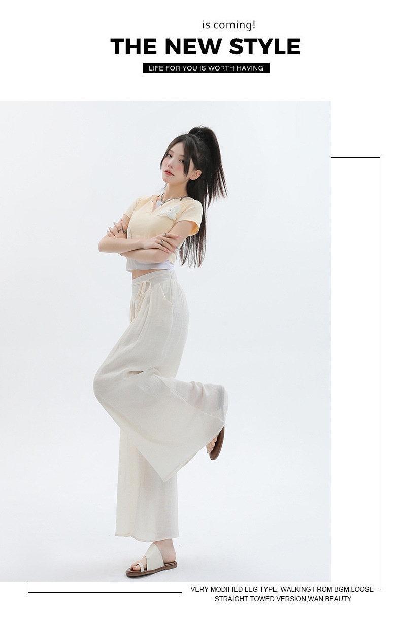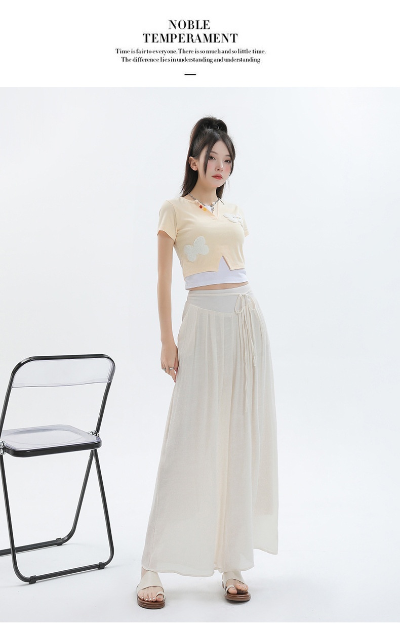 Summer Thin Design High Waist With Straps Slimming And Straight Drape Cropped Wide-leg Pants Skirt