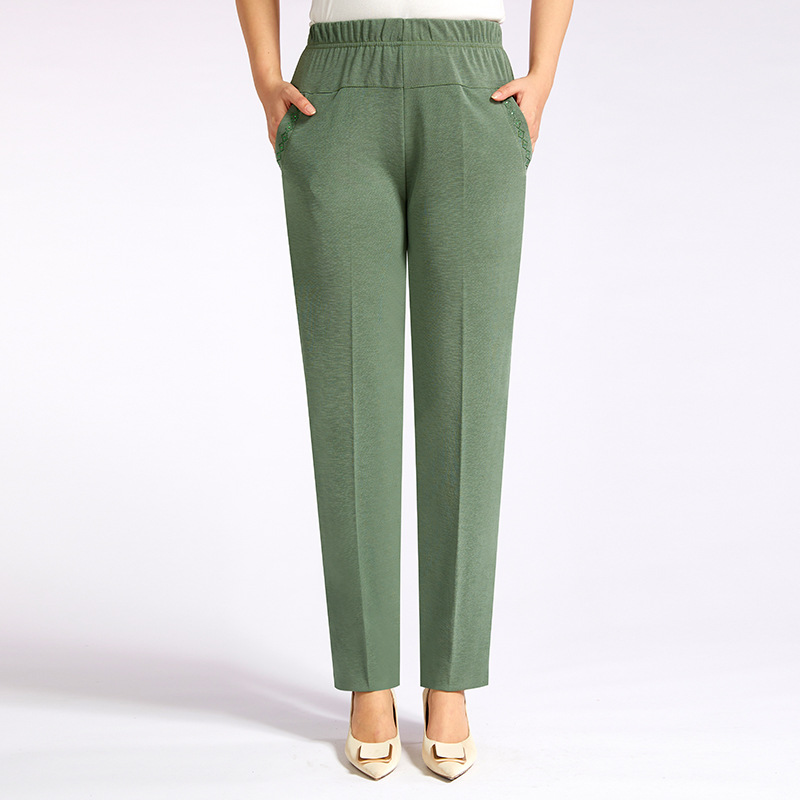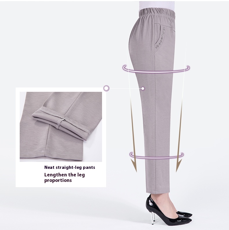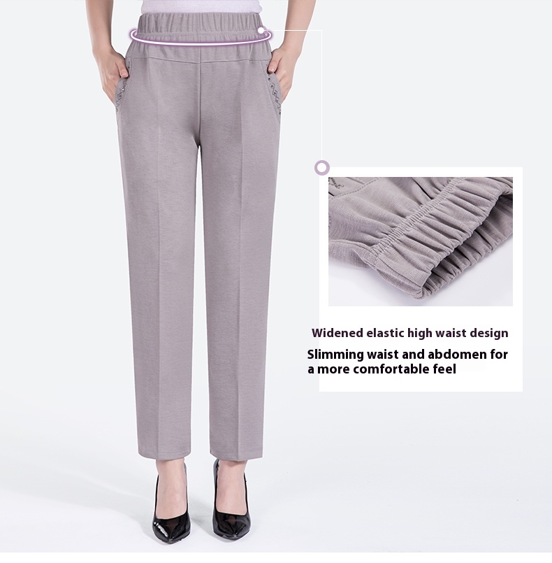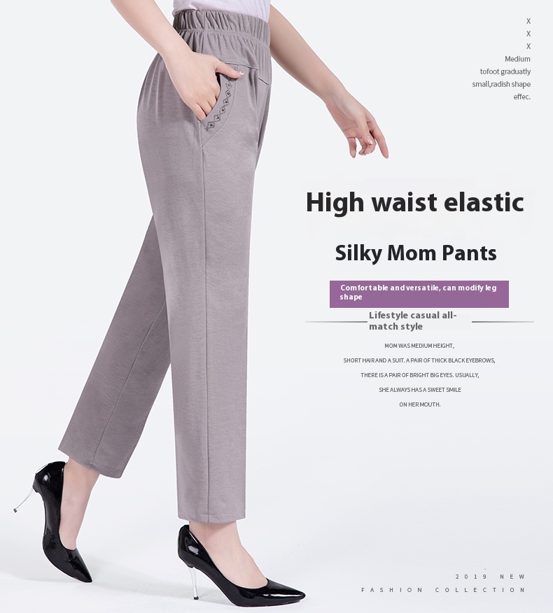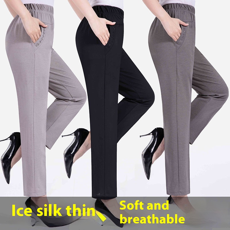 Summer Thin Ice Silk Casual Pants High Waist Elastic Plus Size