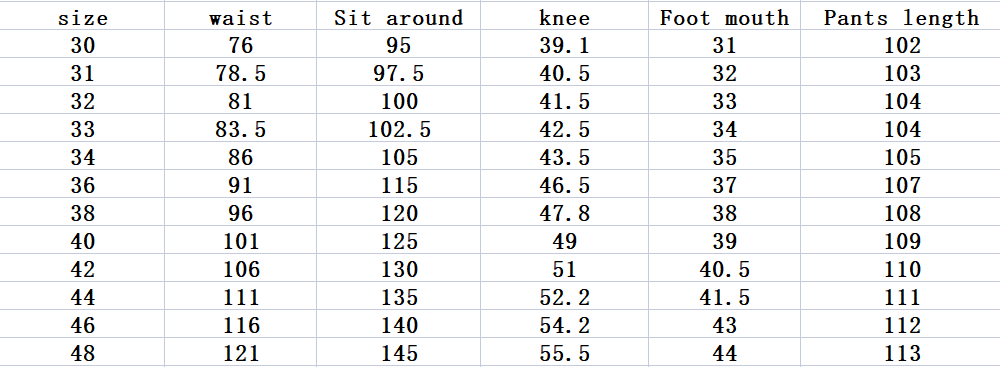 Size: 30,31,32,33,34,36,38,40,42,44,46,48