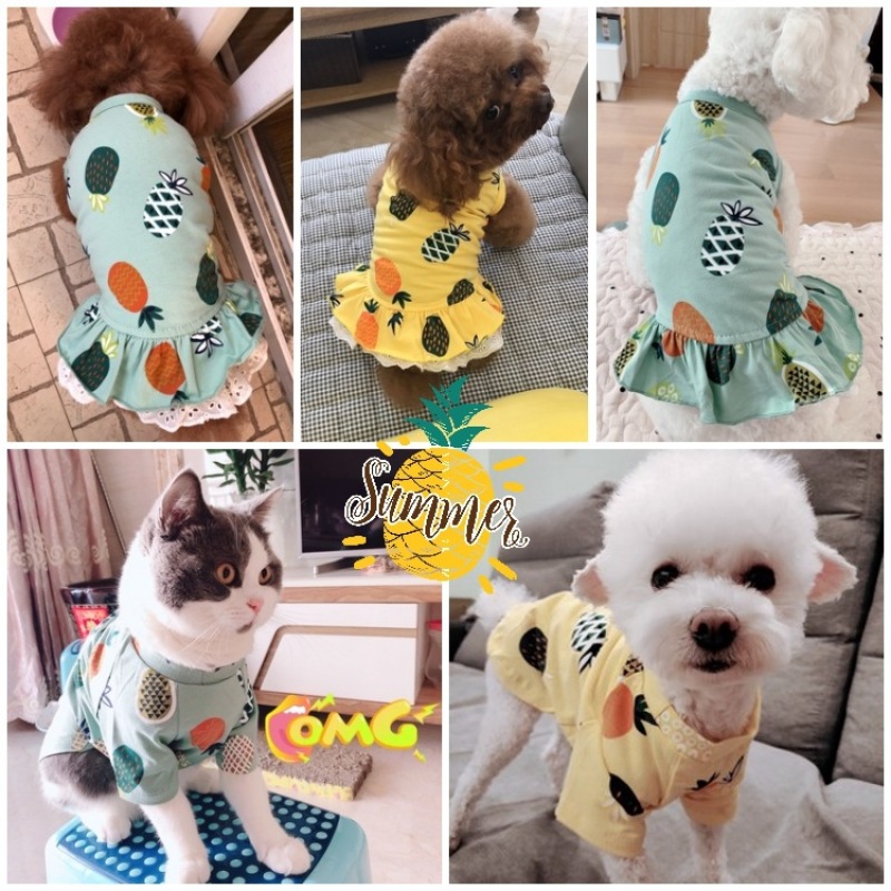 Color: yellow pineapple skirt, green pineapple skirt, yellow pineapple T-shirt, green pineapple T-shirt
