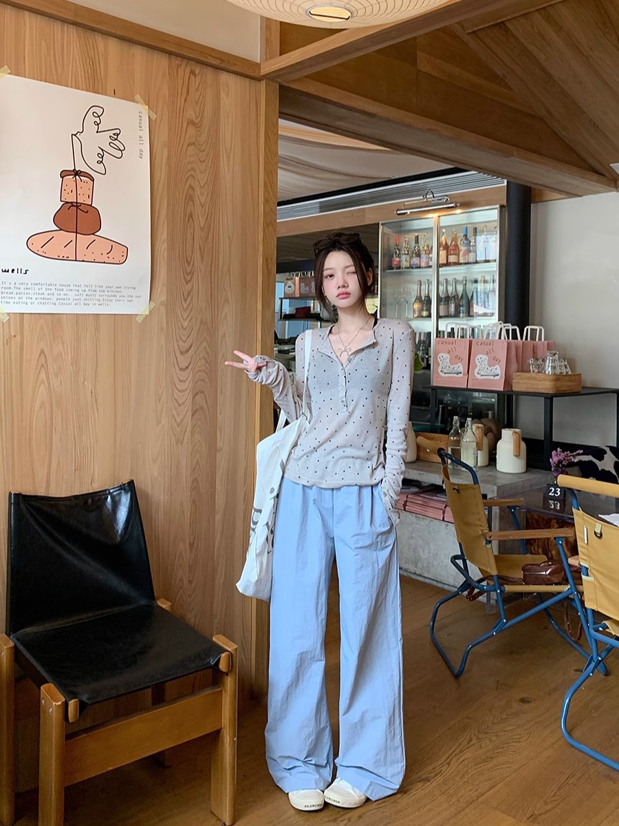 Color: apricot T-shirt, black T-shirt, light blue pants, dark blue pants