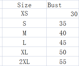 Size: XS (chest circumference 30 and back length 20cm), S (chest circumference 35 and back length 25cm), M (chest circumference 40 and back length 30cm), L (chest circumference 45 and back length 35cm), XL (chest circumference 50 and back length 40cm)