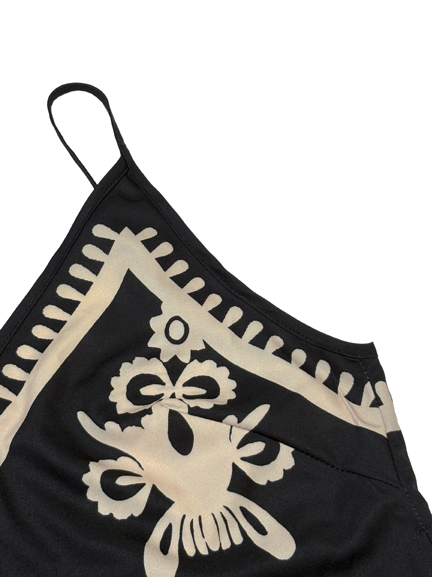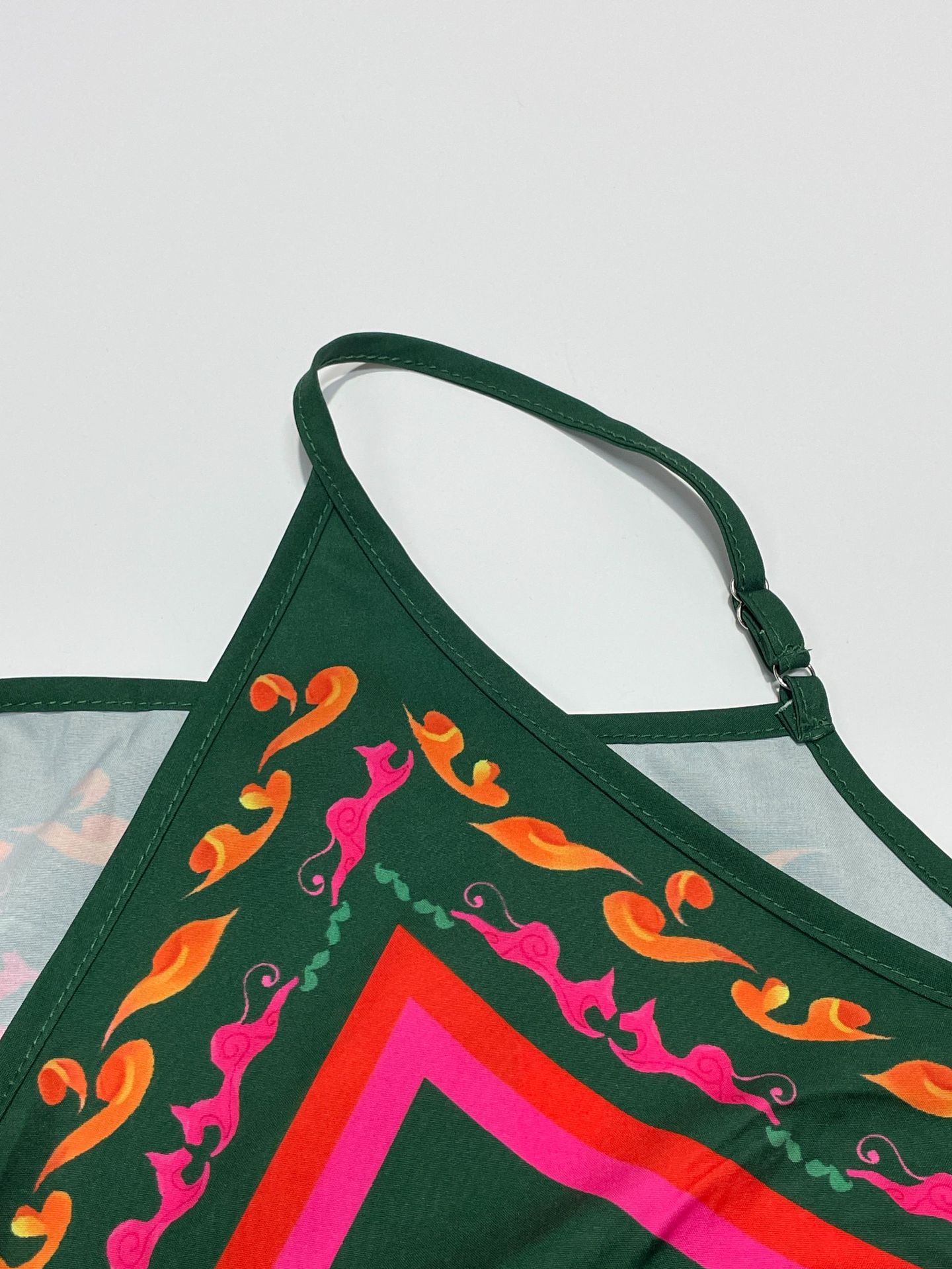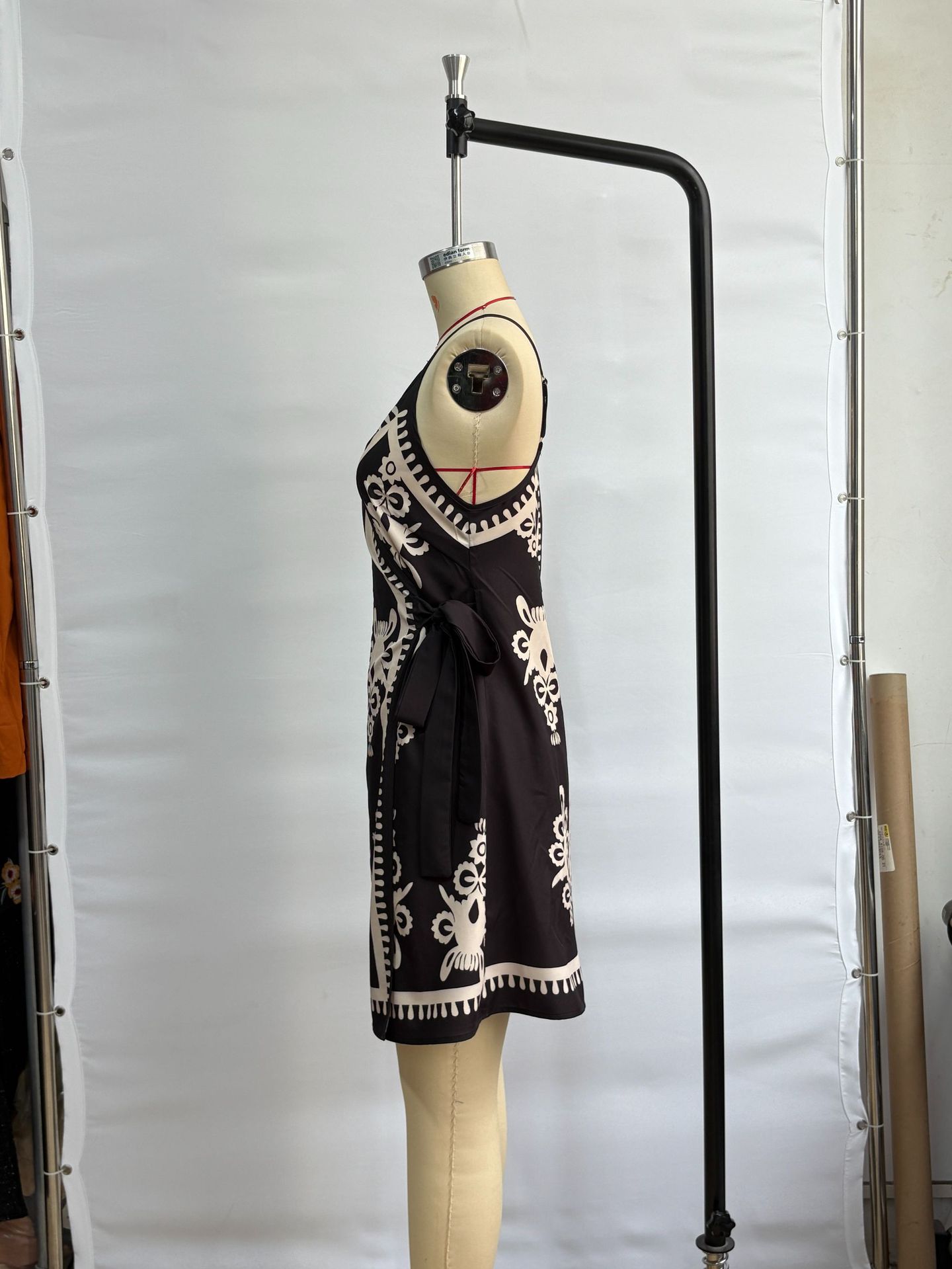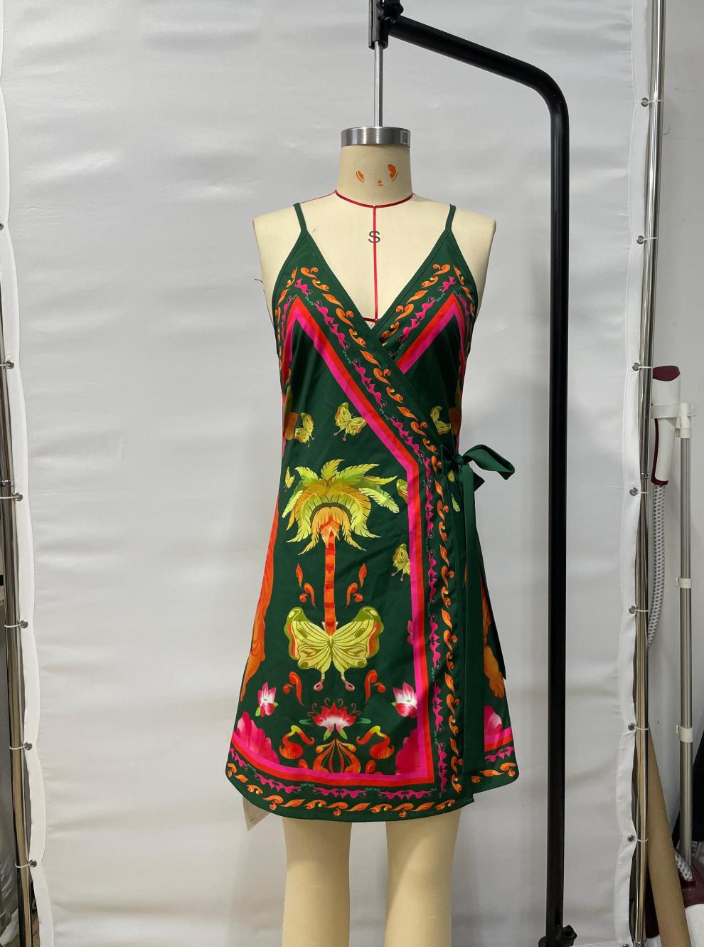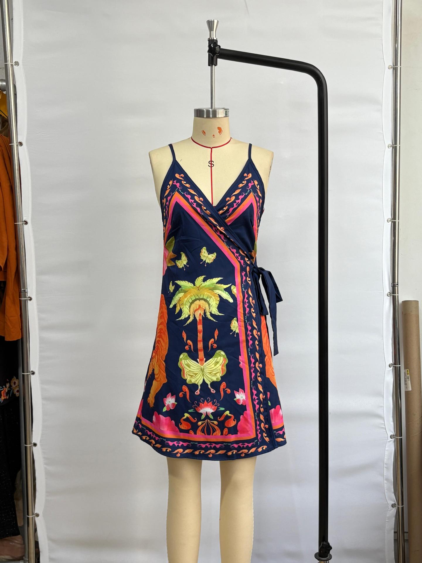 Summer Tropical Print Sleeveless Spaghetti-Strap Lace-Up Dress