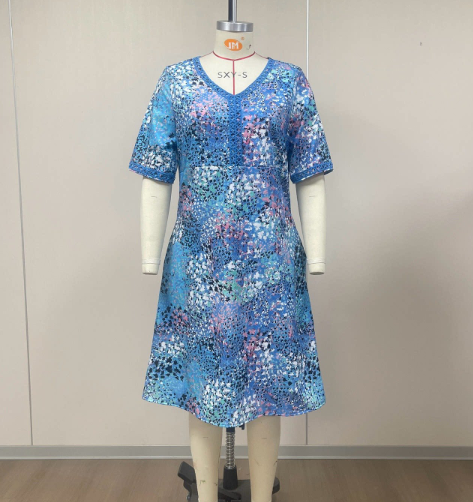 Summer V-neck casual holiday pocket dress homewear