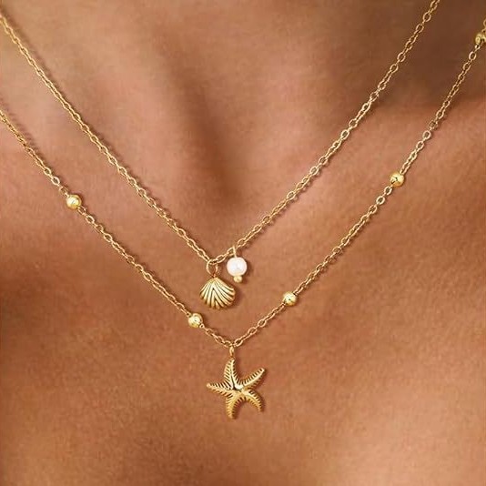 Summer Vacation Style Stainless Steel Shell Starfish Necklace