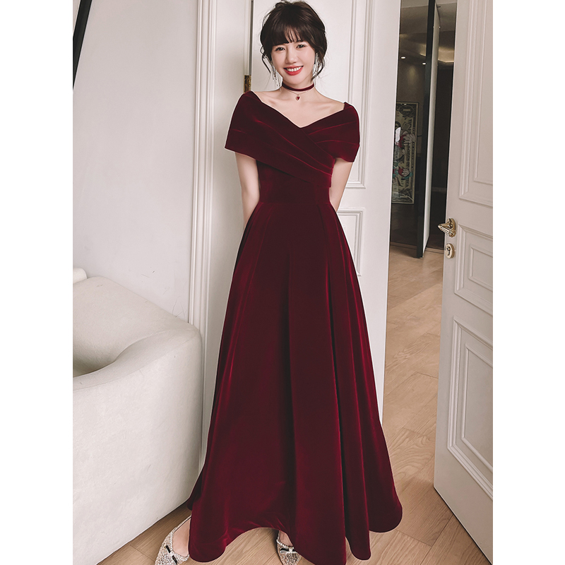 • Wine red GXWP244 velvet long s