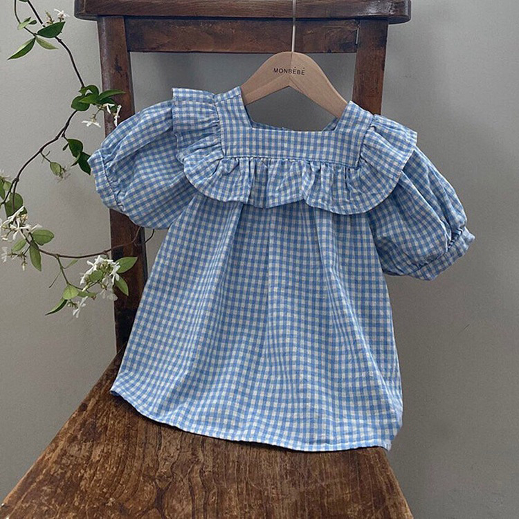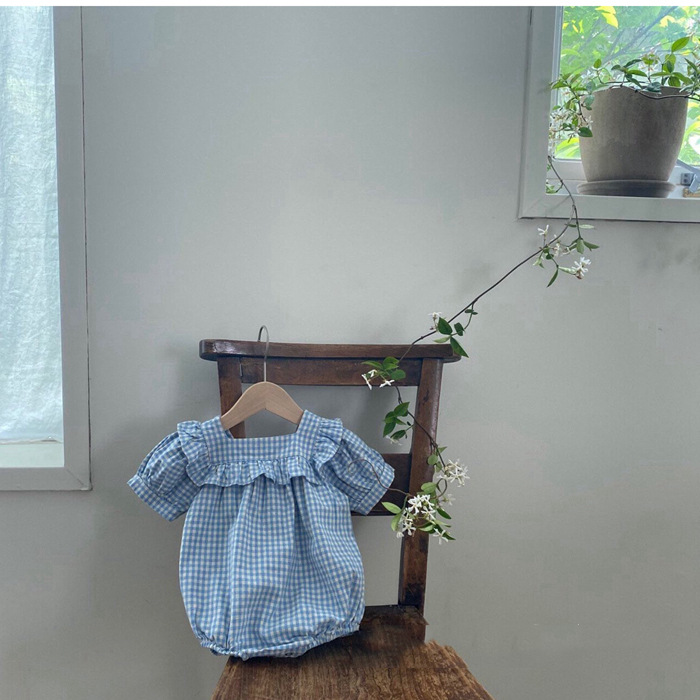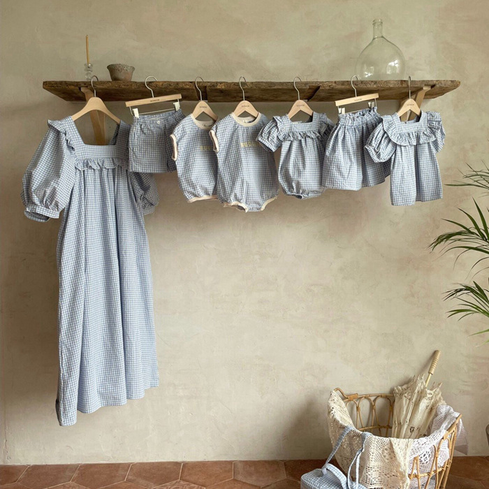 Color: romper blue plaid, lace top blue plaid, mother dress blue