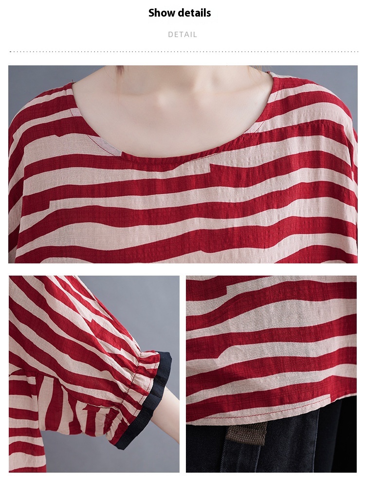 Color: 5049Y# navy blue striped top, 5049Y# black striped top, 5049Y# red striped top, 5049Y# coffee striped top