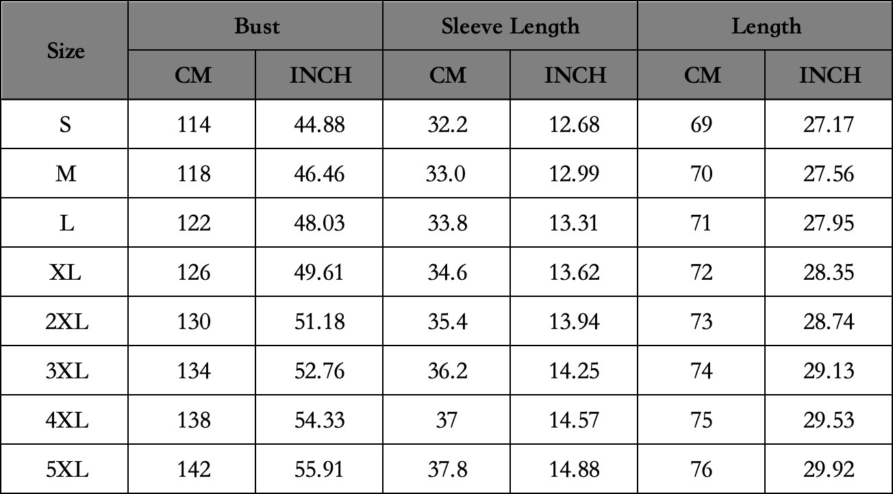 Sizes: S, M, L, XL, 2XL, 3XL, 4XL, 5XL