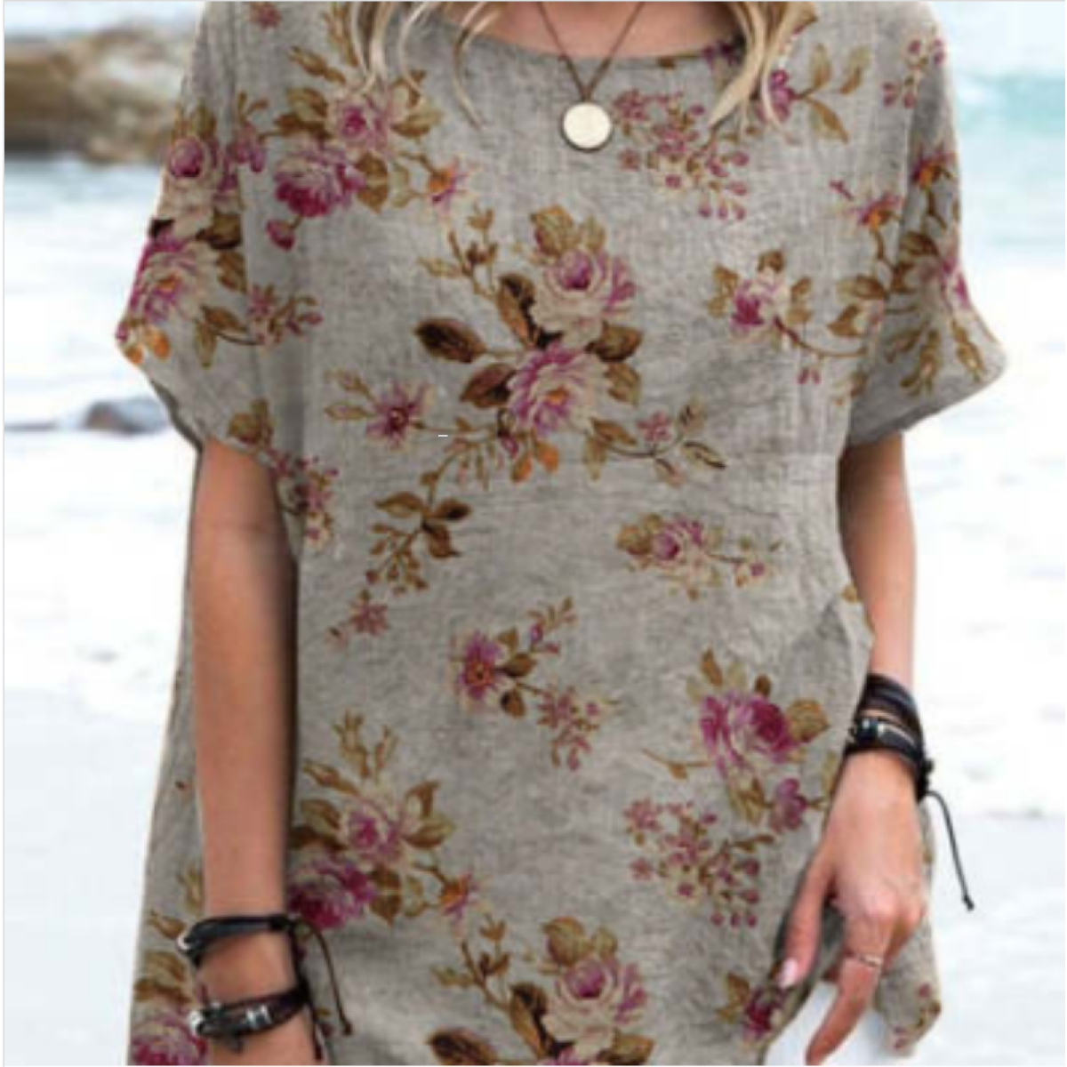 Summer Womens Printed Loose Casual Plus-Size Round-Neck T-Shirt Top