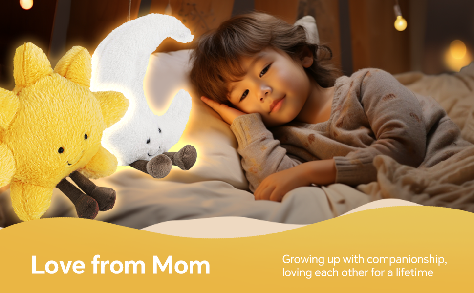Parent-Child Interaction: This stuffed animal serves as a conduit for parent-child interaction, enabling parents to share stories about sun and moon with their children, strengthening their relationship can also stimulate their intellectual development