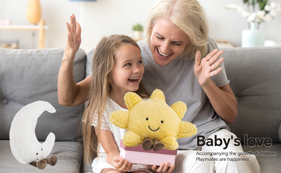 Love and Care Conveyed: Regardless of whether it's a birthday, a holiday, or any other special occasion, moon and sunshine stuffed animal make the ideal gift choice for children. They signify not just surprise and joy but also the profound love and care that parents have for their little ones