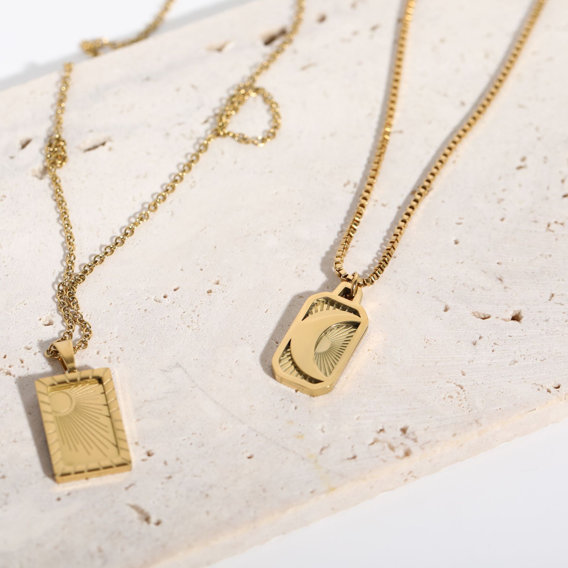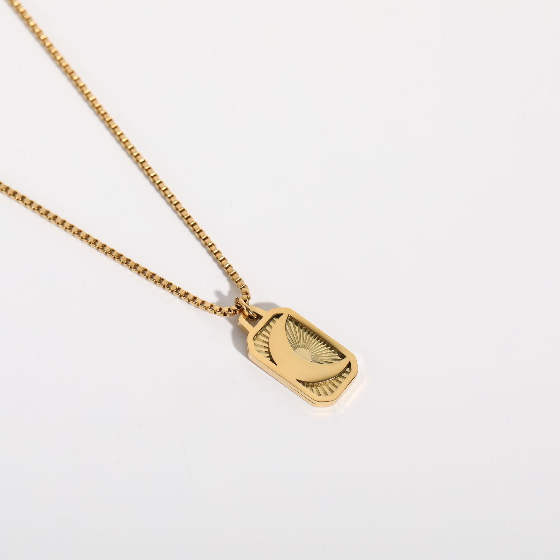 Moon style: 6.8g, pendant 1.1*2.2cm, chain length 44 6cm (box chain)